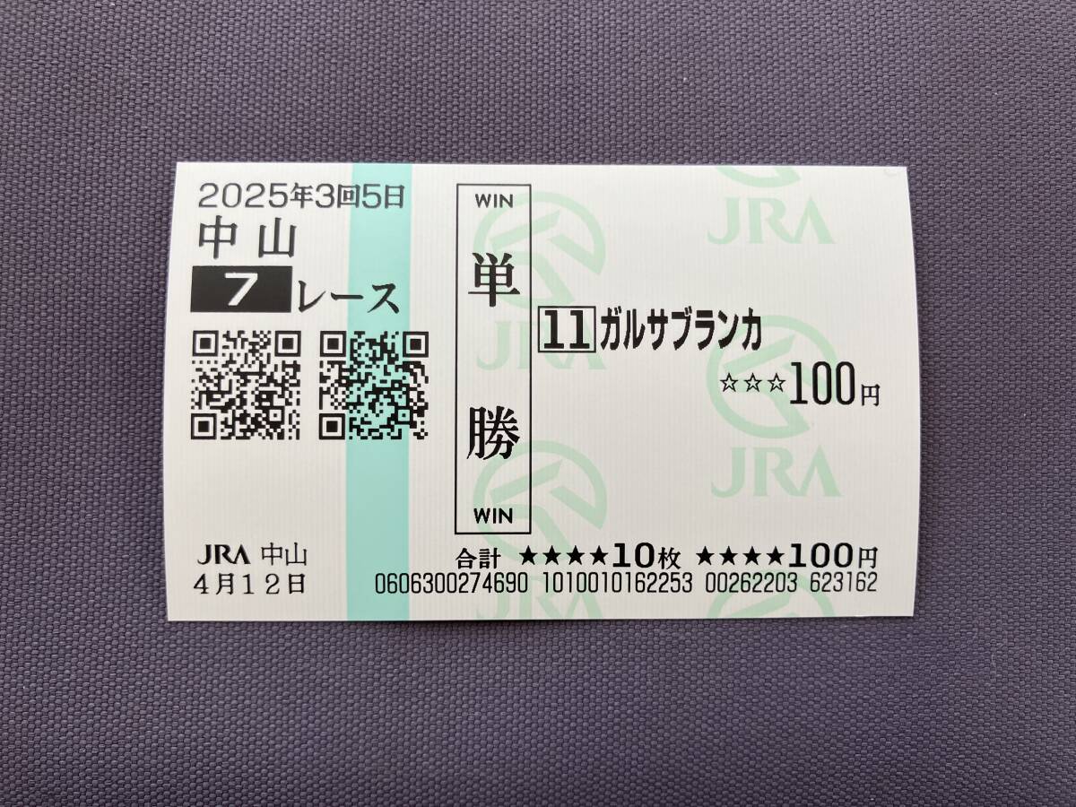 2025年度4歳以上1勝クラス(4/12)現地単勝馬券ガルサブランカ(的中)