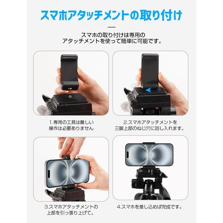 【三脚高さ調節が簡単】クランクハンドルで三脚を三脚は59cmから170cmまでお好みの高さに調節し使用できます。スマホクリップも付き、携帯電話の自撮りができますし、子供の運動会、お祭り、旅行、登山、花火大会、入学式、 入園式 、卒業式 、卒園式 、イベントなどの場所、狭い混雑した場所などでも、便利に使えます。