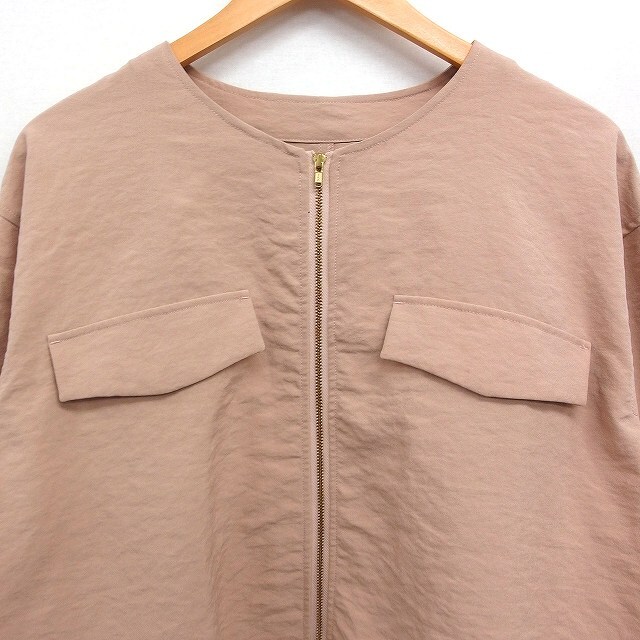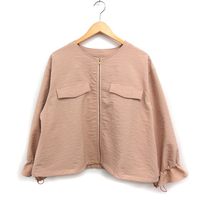ナノユニバース nano universe ノーカラー ジャケット ジップアップ 無地 ゆったり F ピンクベージュ /FT39 レディース