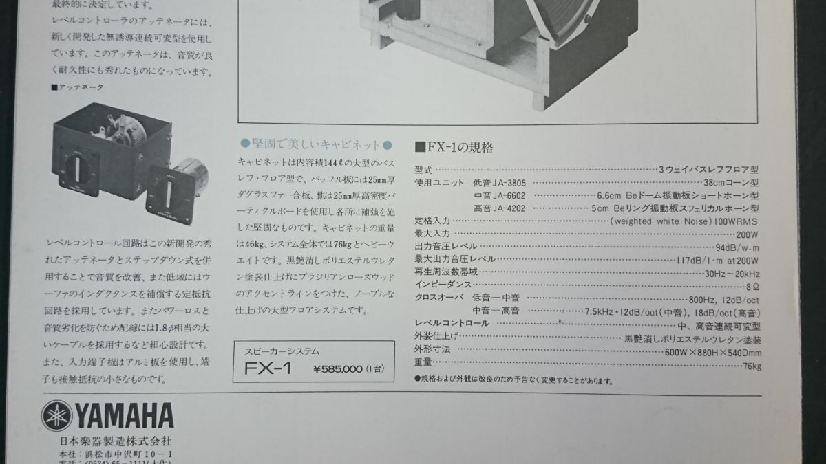 | 【昭和レトロ】『YAMAHA(ヤマハ) Natural Sound Speaker(スピーカーシステム) FX-1 カタログ 昭和53年2月』YAMAHA日本楽器製造株式会社 | |