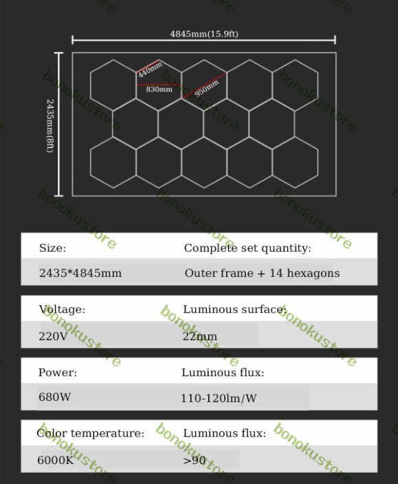 【超高輝度ガレージライト】この超高輝度ガレージ六角ライトは、高度なLEDランプビーズ技術を採用し、高輝度の照明効果を提供し、ガレージ全体をカバーし、ガレージをより明るく安全にします。 2.4*4.8m ガレージ、車庫、私道、廊下などの場所で広く使用できます。.