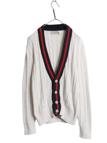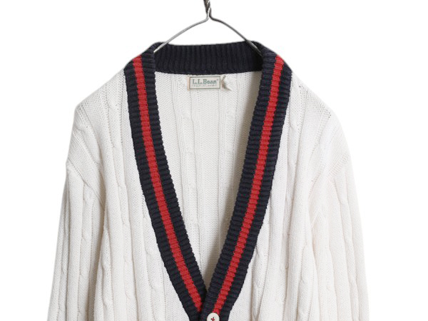 | 商品名 | 80s USA製 エルエルビーン コットン チルデン ニット カーディガン メンズ M / 古着 ヴィンテージ LLBEAN セーター ケーブル 前開き 羽織り |