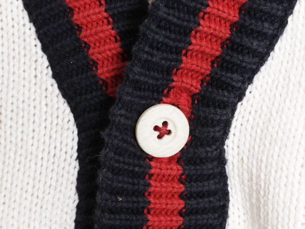 80年代のヴィンテージ 旧タグ L.L.BEAN の チルデン ニット カーディガンです。 素材は、100% SUPER SOFT COMBED COTTON ( コットン ) 柔らかい着心地抜群の素材が使用されています コットン素材ですので、自宅洗濯可能、 お手入れも簡単、幅広い季節に着て頂けます。 合わせやすい、人気のナチュラル ( オフホワイト ) ネイビー×レッドのライン、ケーブル編みのコントラストが 良いアクセントになっています。 不動の人気を誇るチルデンニットカーディガン L.L.BEANらしい時代に左右されない シンプルながら気のきいた 使い勝手の良い、グッドデザイン 気軽に羽織って様になる お勧めの商品です。 |