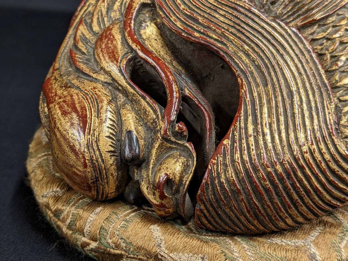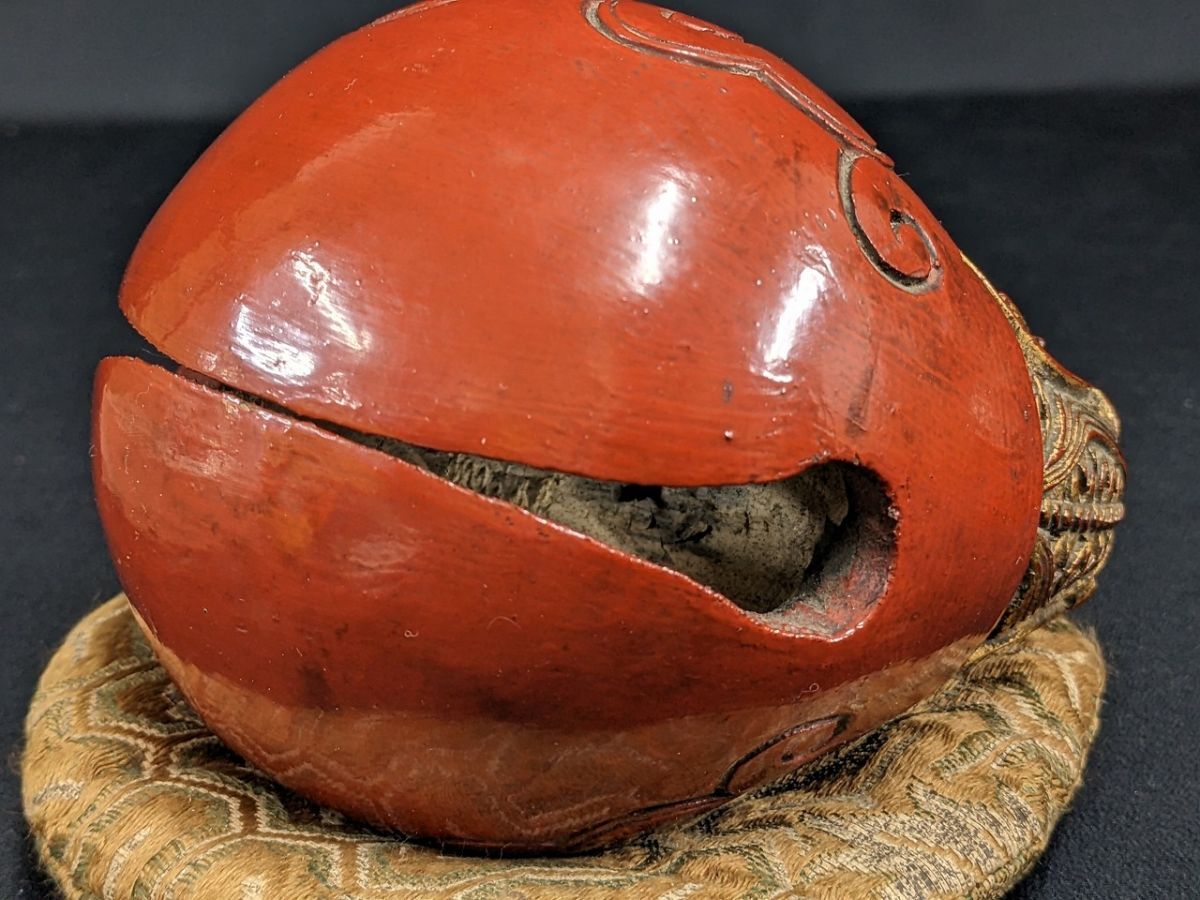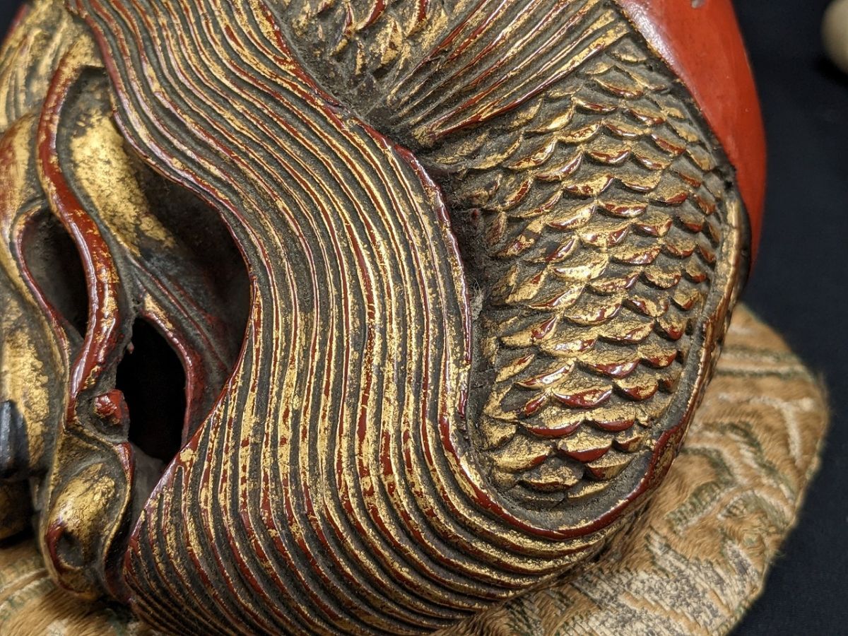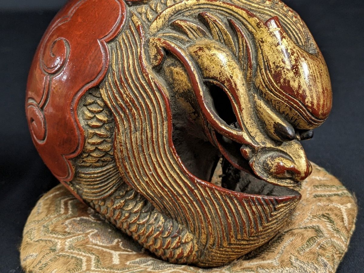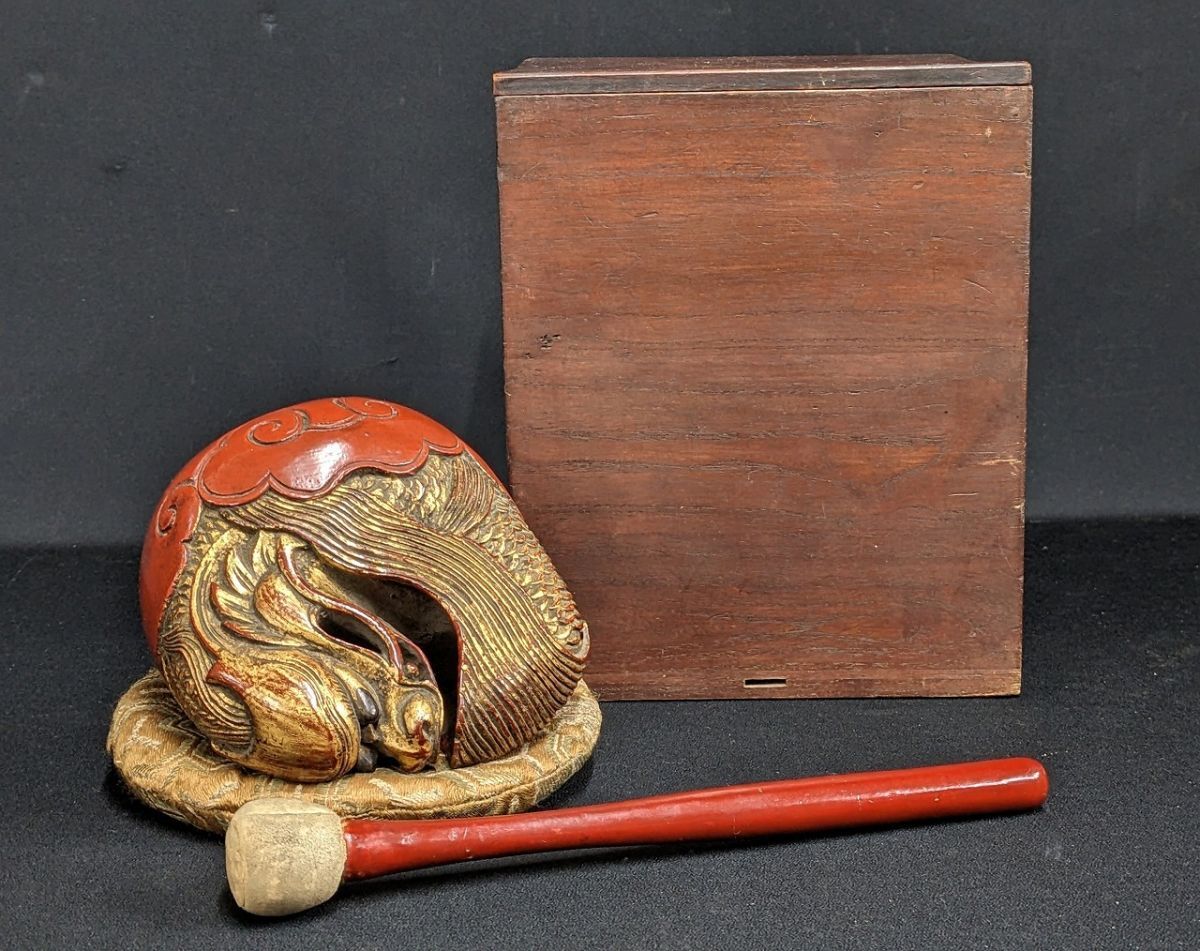 本体サイズ・木魚 幅約11.5cm 高さ約11cm 奥行約12cm/鉢 幅3cm 全長21.5cm。