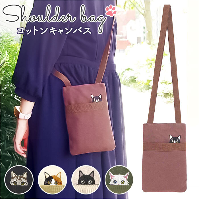 商品名 | 猫刺繍 タテ型 ショルダーバッグ |