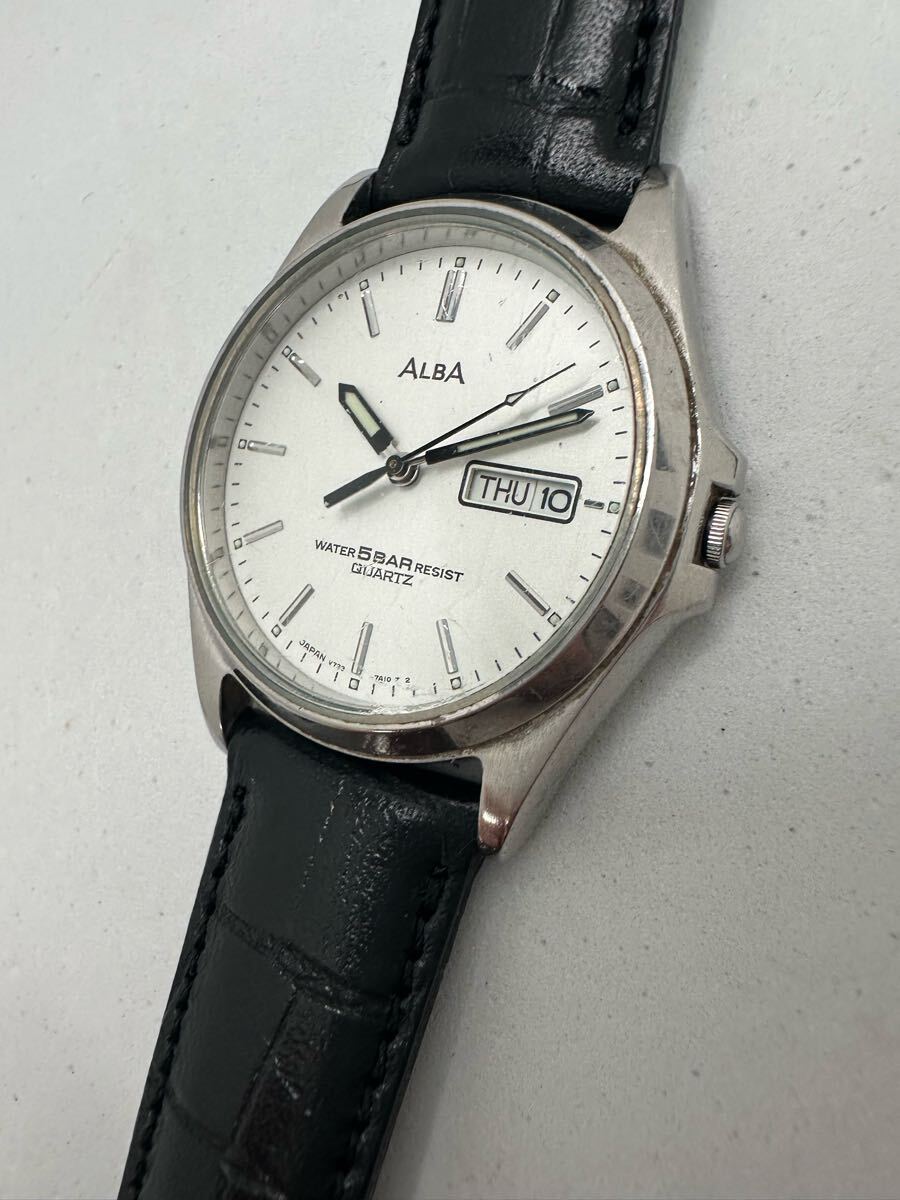 ★サイズ ケース:約36mm (リューズ込み) ベルト腕周り長さ: 最小約15.5㎝ 最大約19.1cm 時計外観に、使用感、傷、汚れの付着などあります。使用感や汚れの付着などありますが、使用に問題ない程度の状態だとおもいます。 動作も問題なく動いております。中古品ですので傷や使用感など気になる方はご入札はご遠慮くださいませ。 電池交換済みです! 中古品です、劣化で壊れる可能性もございます。 ご理解ある方のみのご入札をお願いいたします! *発送は月曜、水曜、金曜のみになります。 お急ぎの方はご連絡していただけましたら出来る限りご対応しますのでご相談くださいませ。 注意事項 | 【この商品は中古品です !】 |