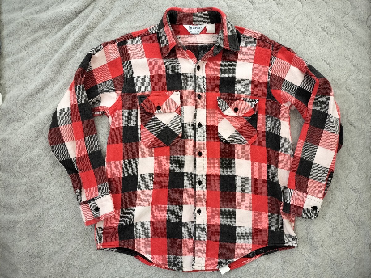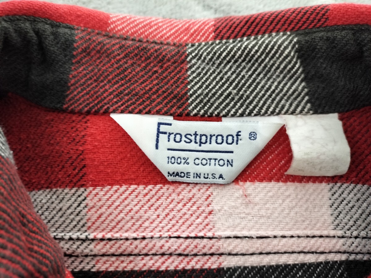 で、4点目が、1~3点目のおすすめポイントを備えたのがアメリカ製のブロックチェックネルであるということ。しかも古着好きからの評価が高いFrostproof謹製。この4つが揃うことはほぼありません。