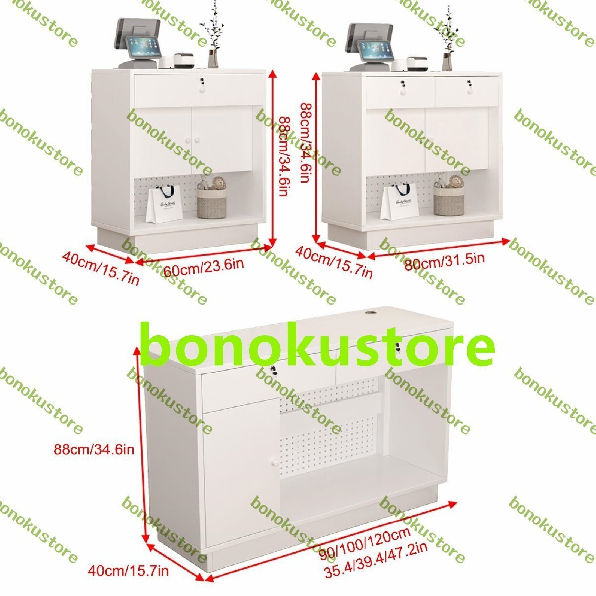 ??軽やかな高級感とシンプルなレジ・受付??***シックな受付デスクをお探しなら、このテーブルがぴったりです。この受付デスクはエレガントに見えます。テーブルを自由にDIYして装飾して、ホームオフィスや作業スペースにふさわしいスタイルを追加できます。?特徴?#雑然とした空間に別れを告げるデスク上のコードやコードの管理に#厳選素材健康的で環境に優しいボード、滑らかで平らな、優れた素材を使用#キャビネットとロック可能な引き出しドアとロック可能な引き出し付きの大きなキャビネットにより、個人用アイテムやビジネスアイテムを保管するためのプライバシーがさらに確保されます?仕様?* 名前: モダンなフロントデスク*材質:パーティクルボード* カラー: ホワイト、ブラウン、ピンク、ブラック* スタイル: モダンでシンプル* 寸法 (長さ x 幅 x 高さ):- 60x40x88cm/23.6x15.7x34.6インチ- 80x40x88cm/31.5x15.7x34.6インチ- 90x40x88cm/35.4x15.7x34.6インチ- 100x40x88センチメートル/39.4x15.7x34.6インチ- 120x40x88cm/47.2x15.7x34.6インチ?パッケージは以下を含みます?1×フロントデスク