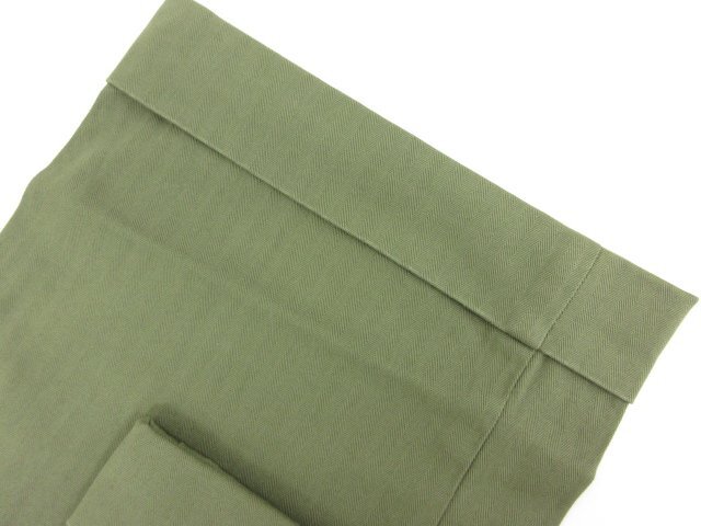 ・総丈約103~104センチ、ウエスト実寸約76センチ(4センチ出し詰めが可能です)、股上約28センチ、渡り幅約30センチ、股下約77センチ、裾幅約20センチ、裾はロールアップデザインです。