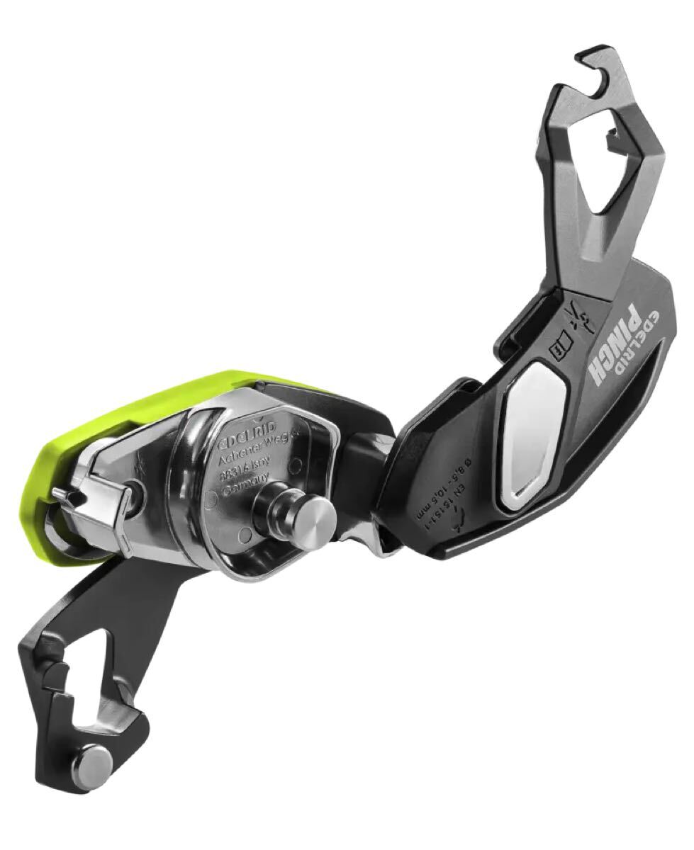 カラビナを使わずハーネスのビレイループにセットでき、デバイスの位置が下がることにより、より長くロープを繰り出すことが可能