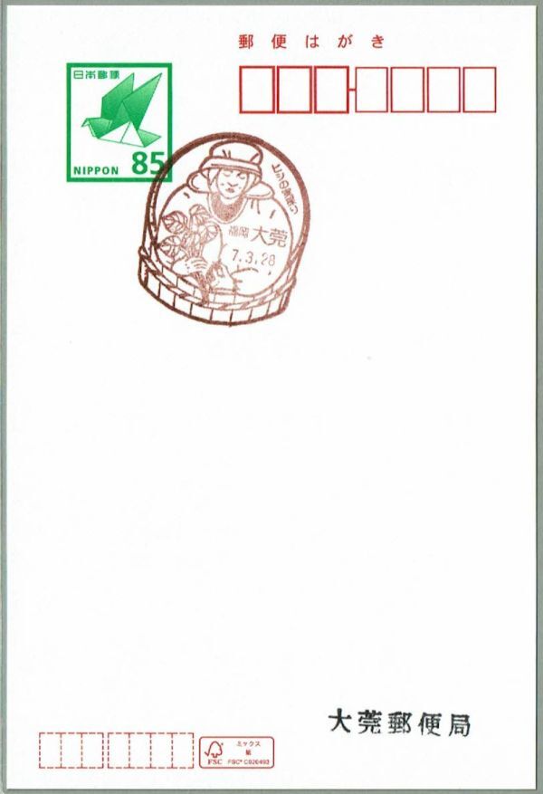 2025(令和7)年3月28日限りで使用廃止された、風景印を官製はがきに押印しています。