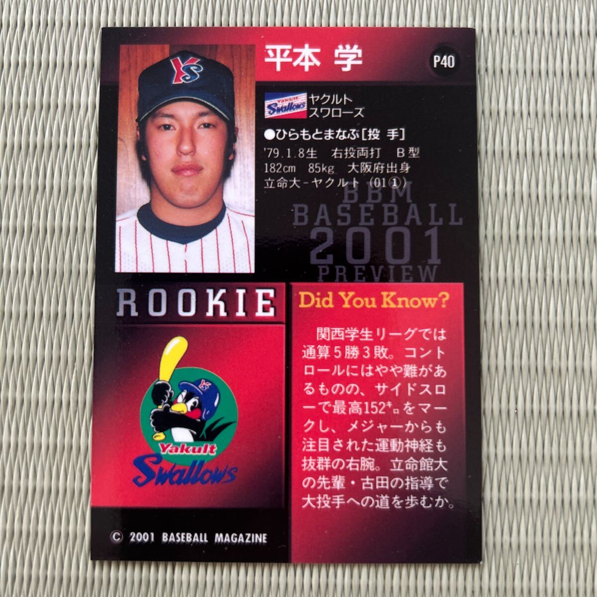 2001BBM P40 平本学 ルーキーカードRC ヤクルト