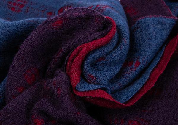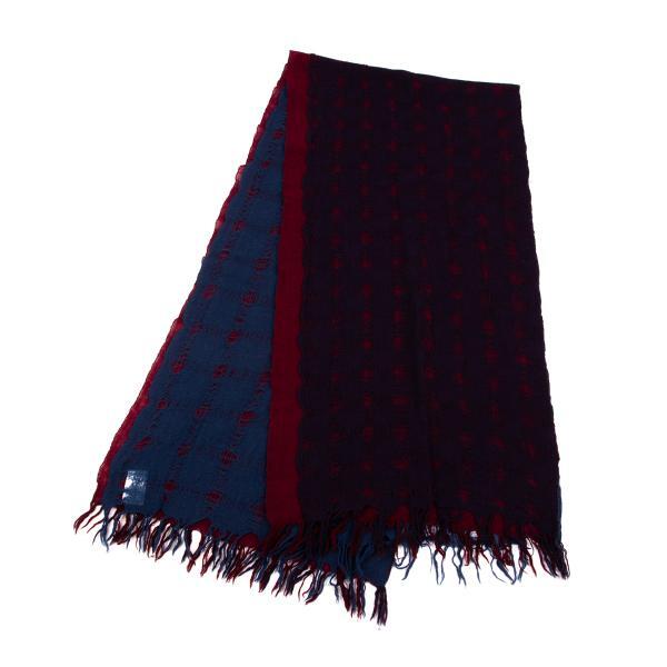 ワイズY's チェック織り3色使いストール 青赤紫他 |
