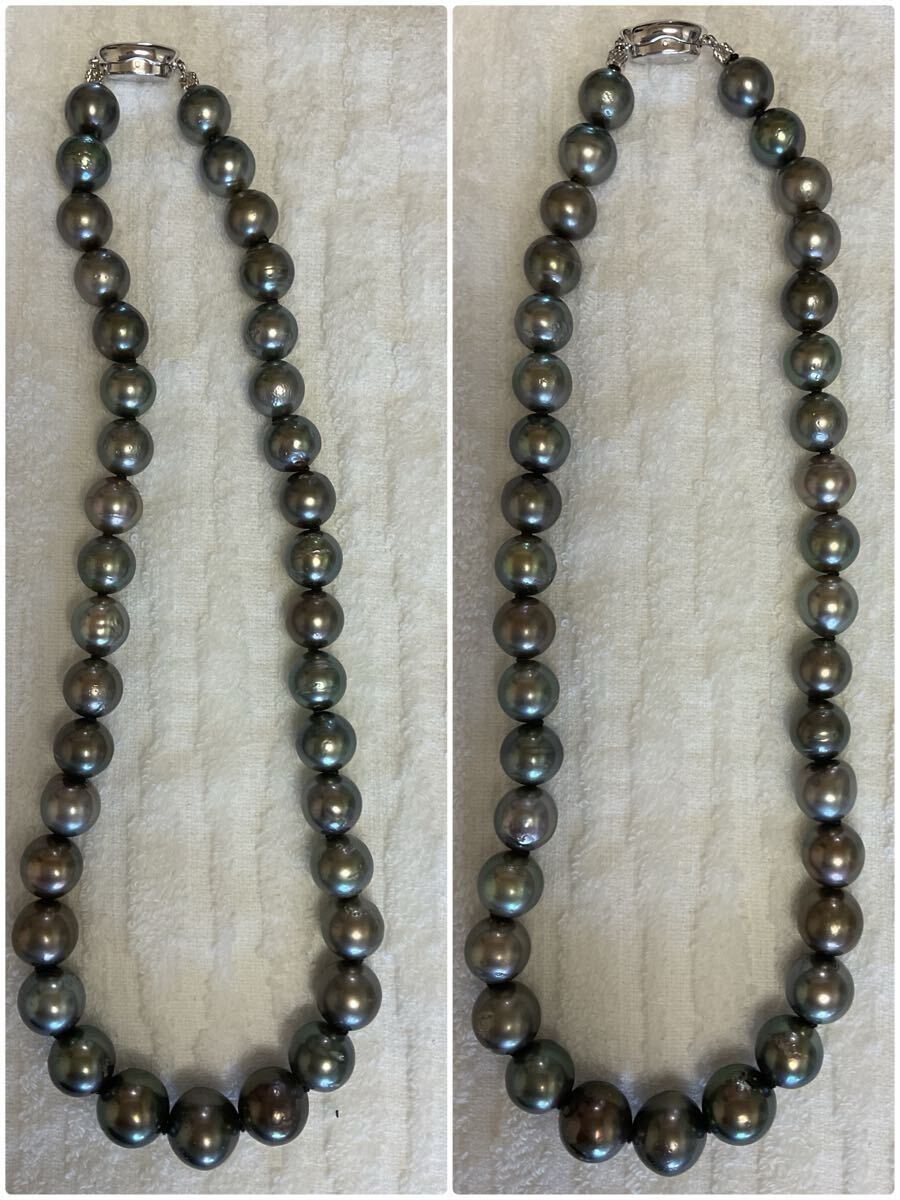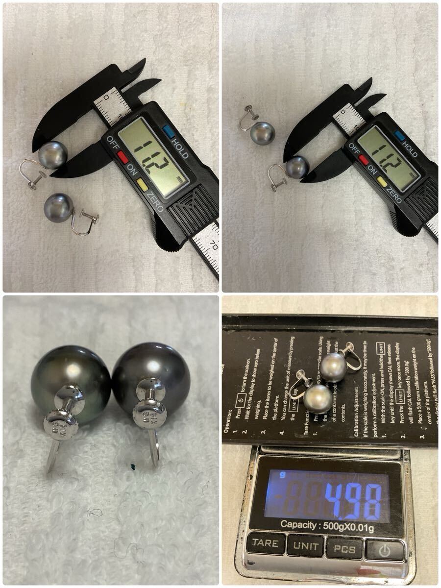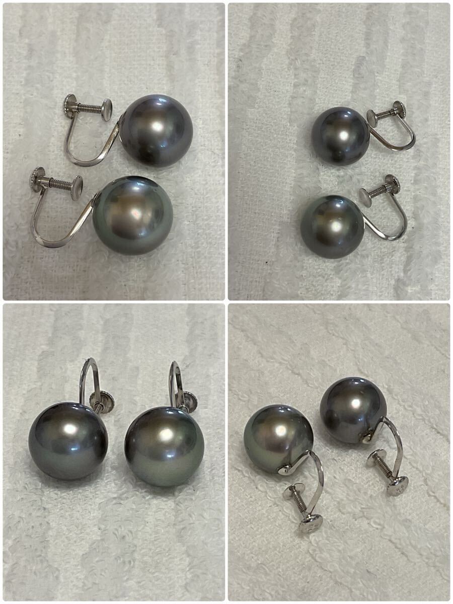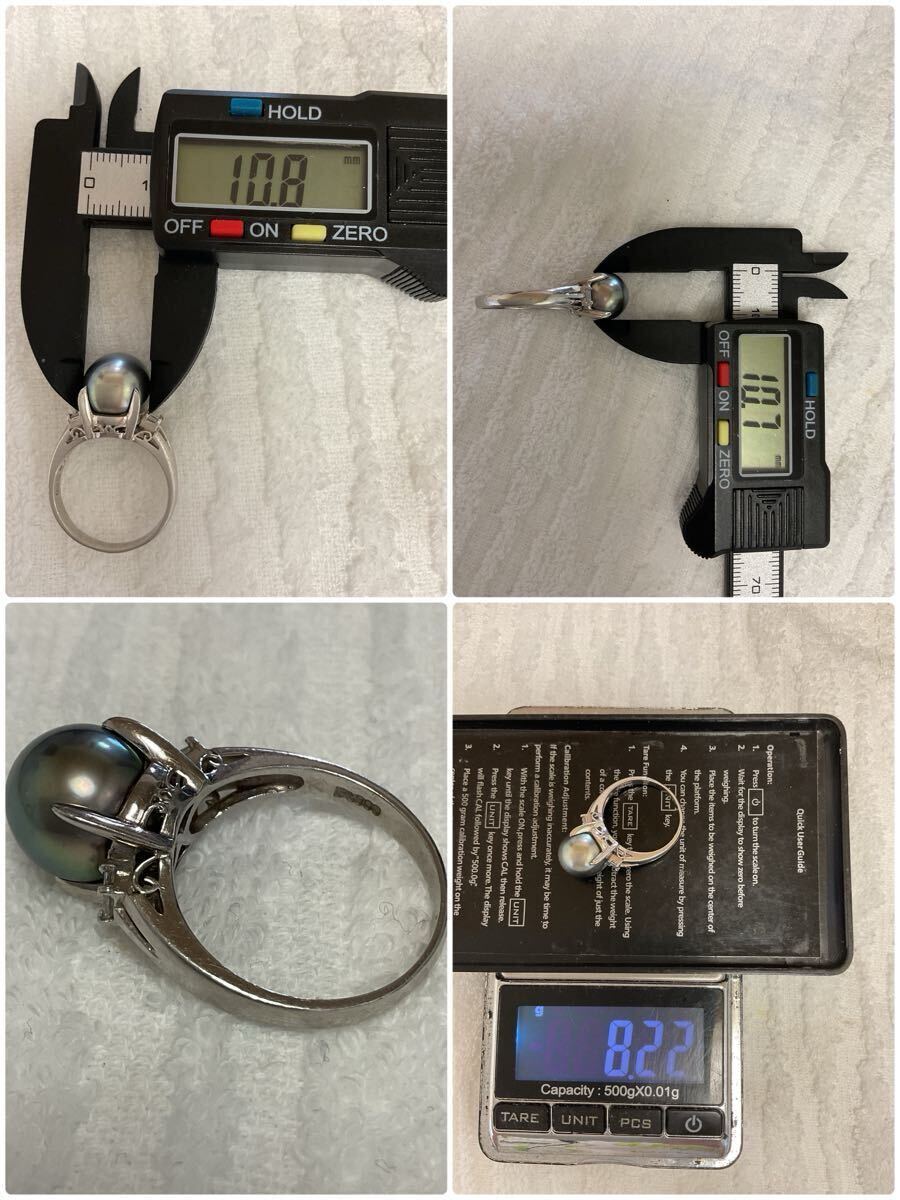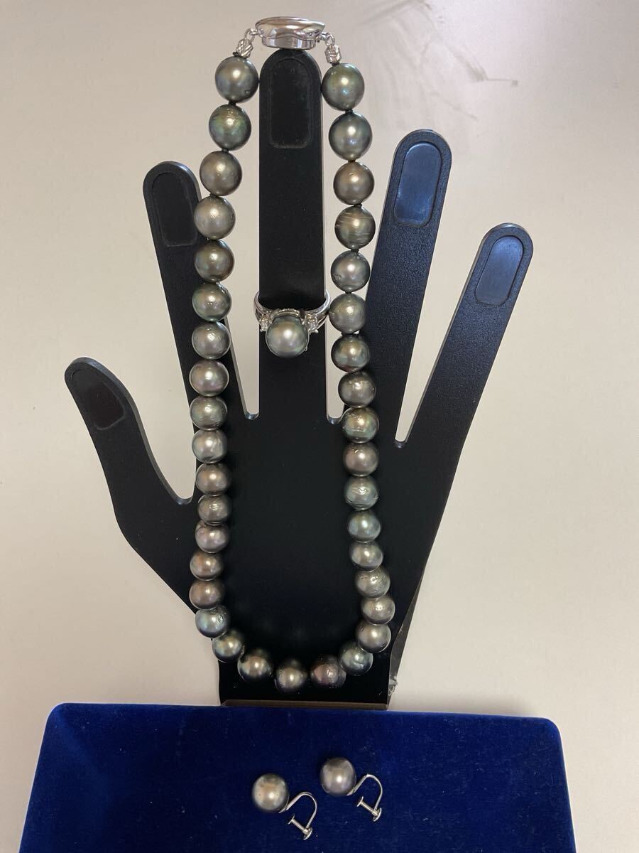 【豪華3点セット】黒蝶貝 ピーコックパールネックレス/PT900リング//K14WGイヤリング 3点セット (直径9.9mm-13.3mm/重量72.95g)現状品