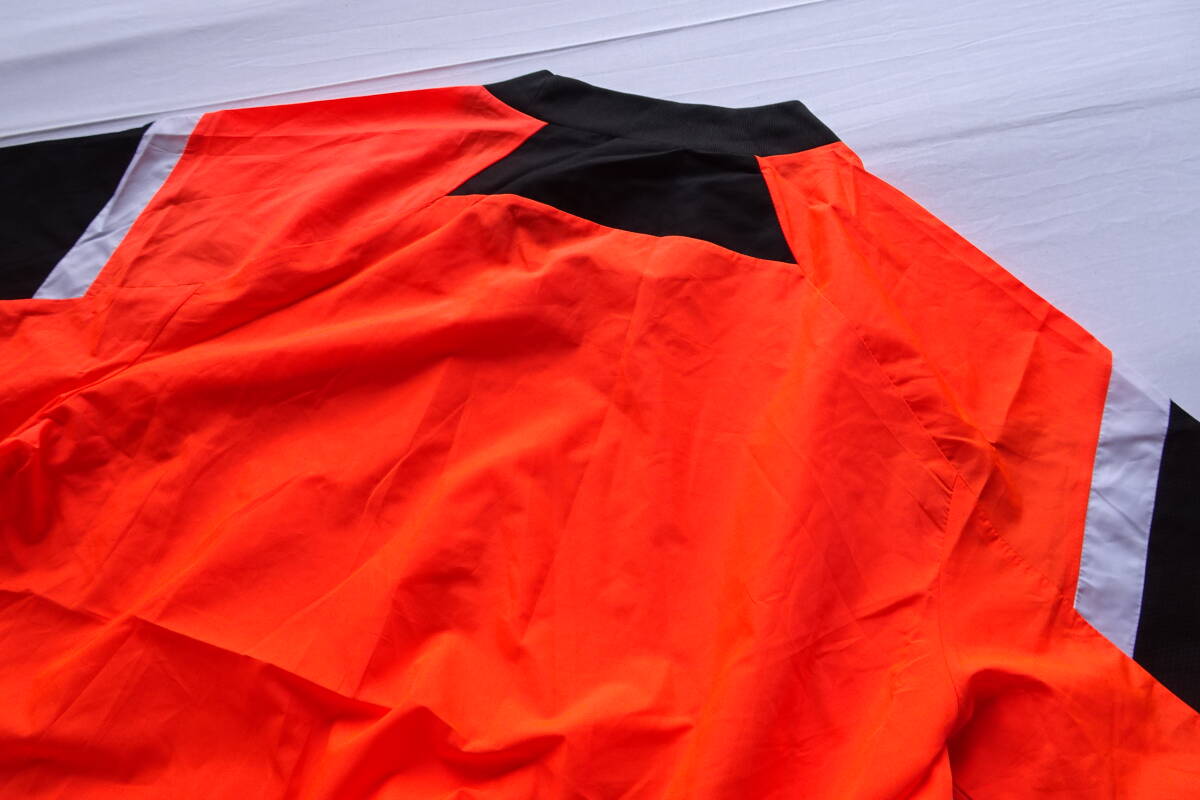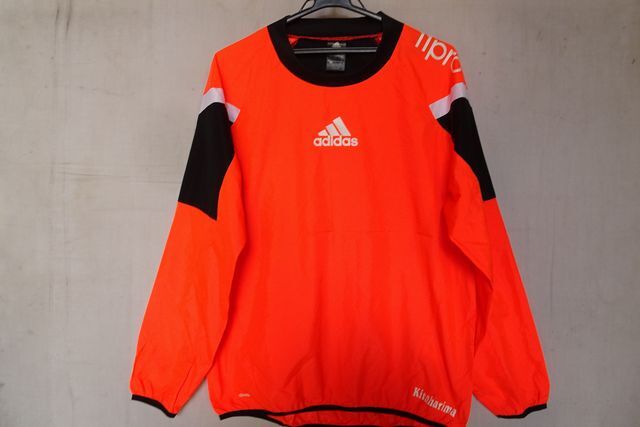 adidas/アディダス/長袖プルオーバー/ナイロン系ポリエステル/黒切替/黒トリミング/スポーツ/蛍光オレンジ/Mサイズ(4/8R7)