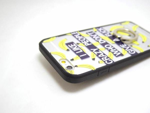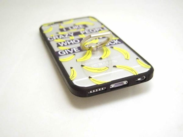 | iPhone 6/6s バナナ柄 ソフトケース カラーは写真の通りです。 硬めのケースです。リング付きなので、落下防止になります。 透明部分はハードタイプです。 パッケージはありません。 自宅保管の未使用品です。 ※簡易パッケージとなります。 |