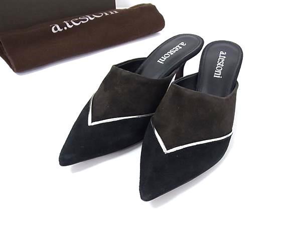 ■極美品■a.testoni ア テストーニ スエード ミュール表記サイズ: 36 1/2 ( 約23.5cm) 靴 シューズ レディース ブラック系 BJ8410
