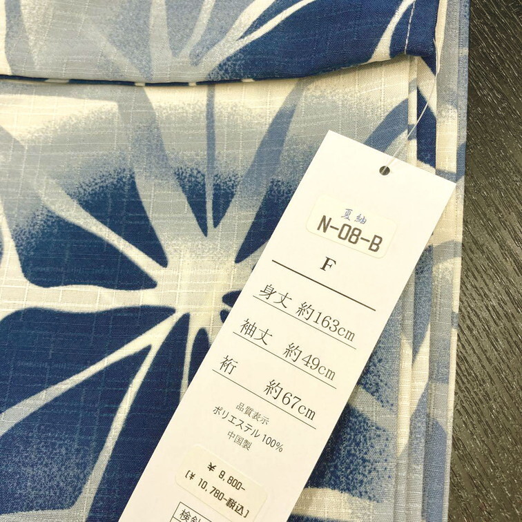 ポリエステル100% 身丈・165cm 裄丈・ 67cm 身長155cm前後の方から165cmの方までにお薦めのサイズとなります。