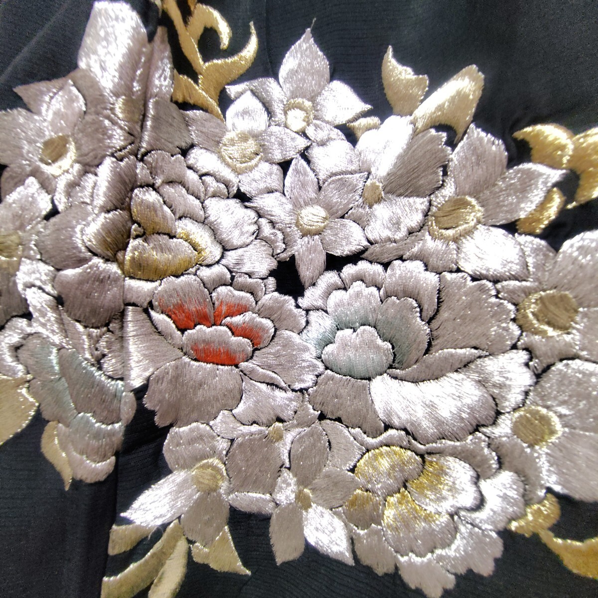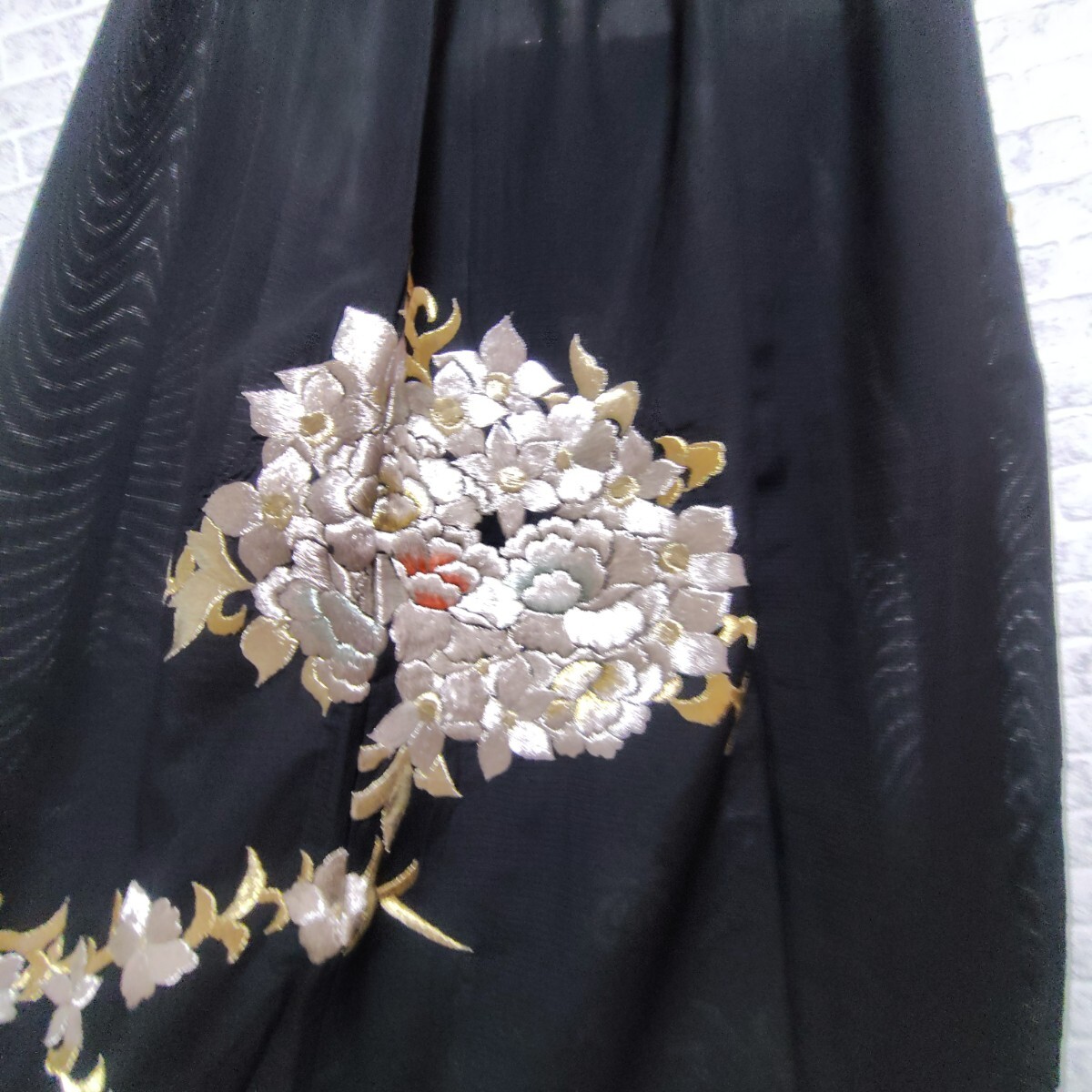 とても豪華*で高価*な黒留袖をゴムのスカートにリメイク致しました。軽くて透けてます♪