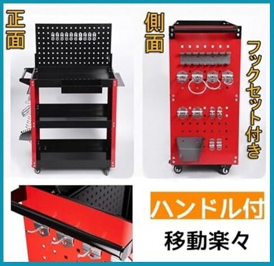 【新品送料無料】MIMIER ツールワゴン ツールカート 工具ワゴン 工具カート 3段 キャスター付 ドライバーホール メッシュパネル