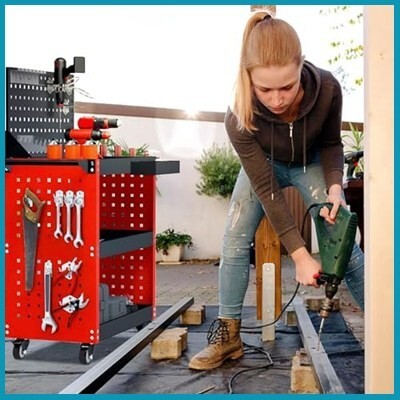 • ガレージ作業や工具の運搬に、ちょっとした作業台としてもお使いいただけます。