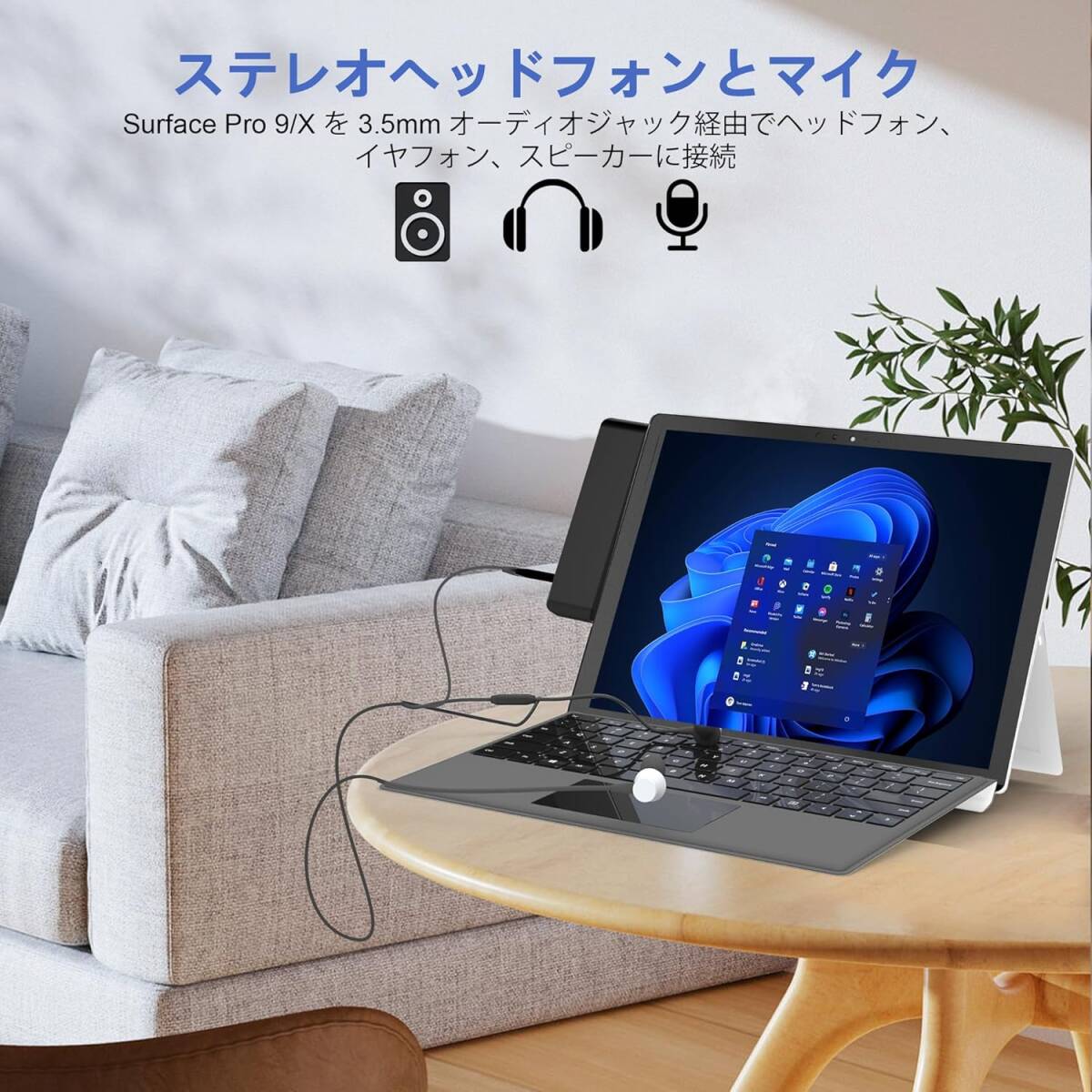 高速データを転送 & 3.5mmオーディオ/マイク端子: タイプC Thunderbolt 4全機能インターフェースはSurface Pro 9/10/11では40Gbpsのデータ伝送速度で、Surface Pro X では10Gbpsのデータ伝送速度です。 2*USB 3.0ポートハブを介した超高速5Gbpsデータ転送。 480Mbps SD/TF データ転送をサポートし、写真、ビデオ、音楽、その他のファイルを数秒でアップロードおよびダウンロードできます。注: 同時に 2 枚のカードを読み取ることはサポートされていません。また、3.5mm入出力オーディオ/マイク端子も装備しており、3.5mmケーブルで有線ヘッドフォンを接続して、お気に入りの音楽を聴くことができます。