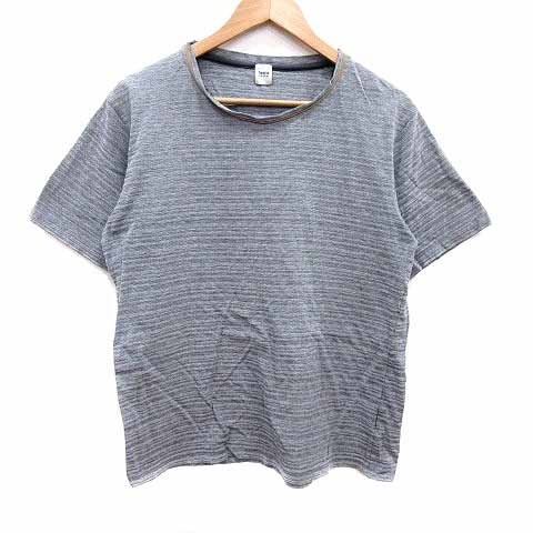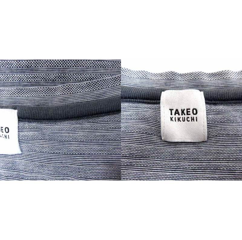 タケオキクチ TAKEO KIKUCHI Tシャツ カットソー クルーネック ボーダー 半袖 3 L ライトグレー 紺 ネイビー /YK メンズ