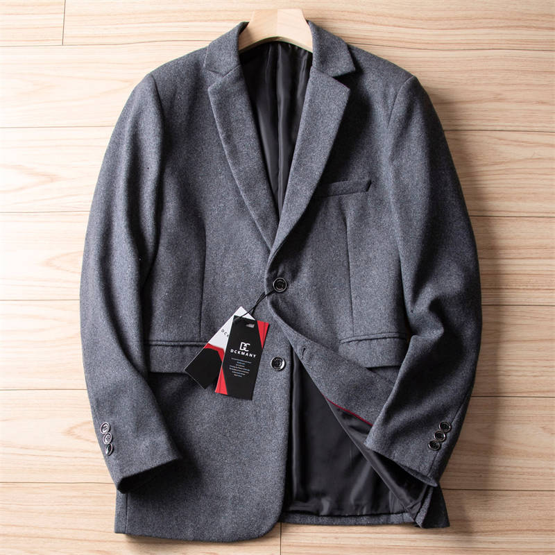 W0456-S程度/灰 洗練シルエット!新品DCKMANY メンズ ウール混 テーラードジャケット 上品 細身 秋冬 ビジネス カジュアル ブレザー