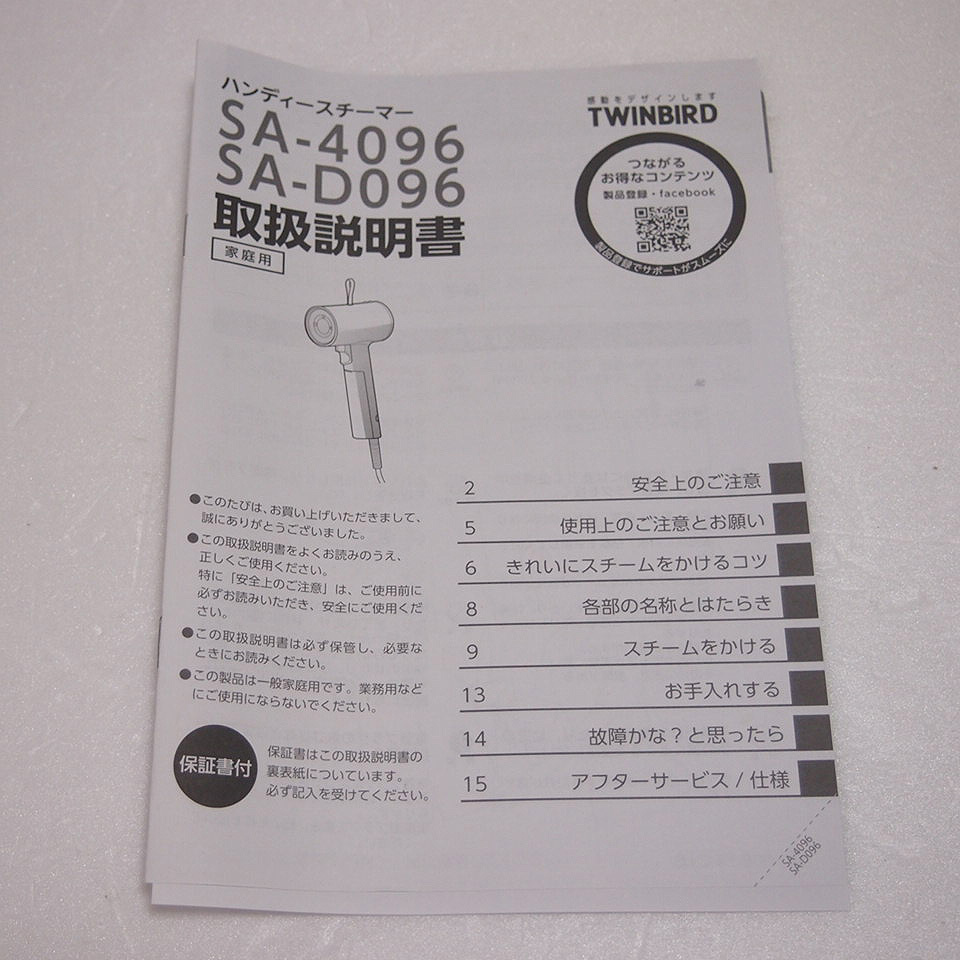 【未使用】ツインバード ハンディースチーマー SA-4096W ホワイト