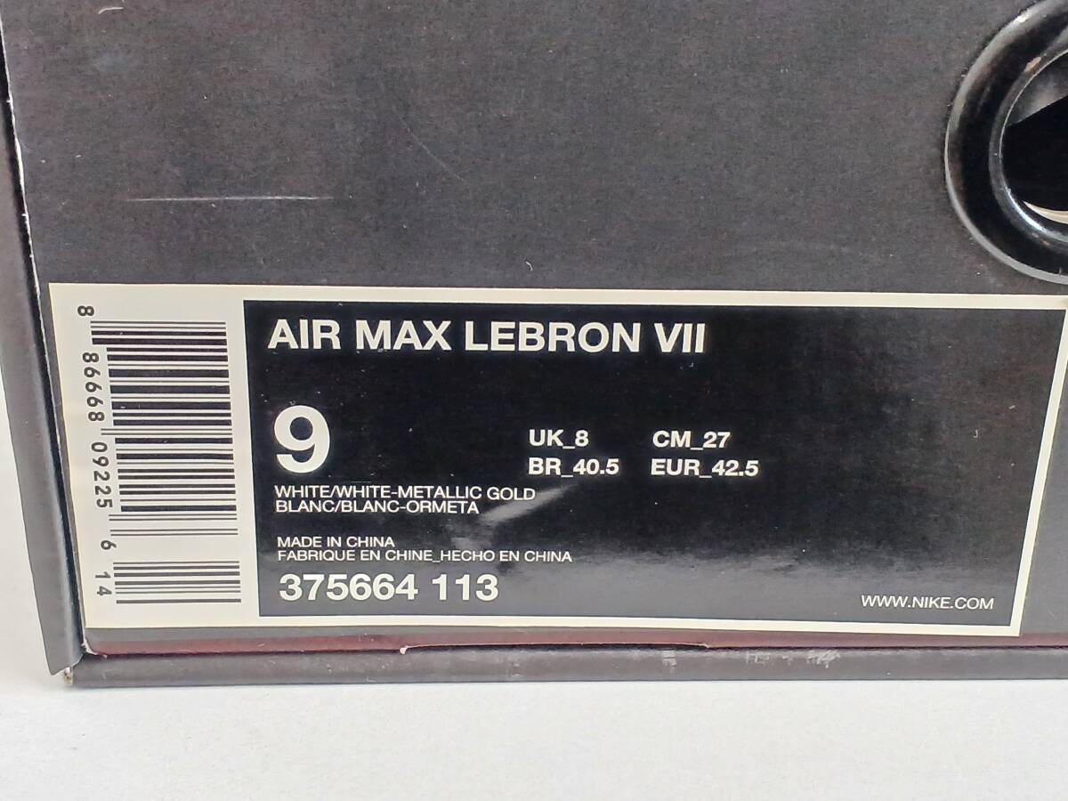 NIKE AIR MAX LEBRON 7 27cm 未使用 箱付 エア マックス レブロン 7 US 9 WHITE / WHITE-METALLIC GOLD BLANC / BLANC-ORMETA 白 × 金