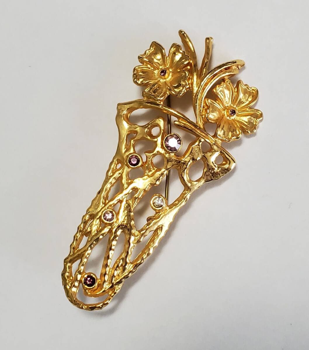 ラインストーン  ブローチ  ゴールドカラー  レディース  20g