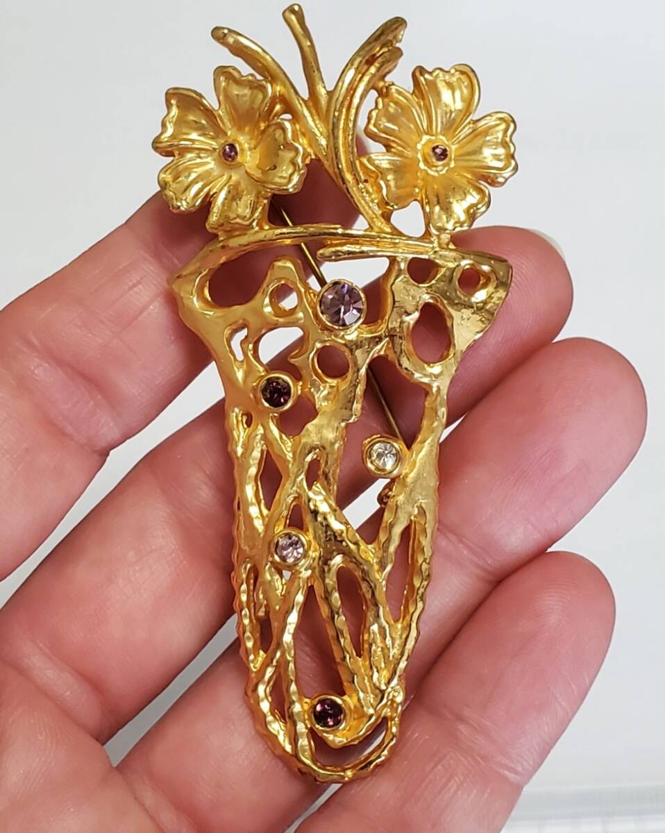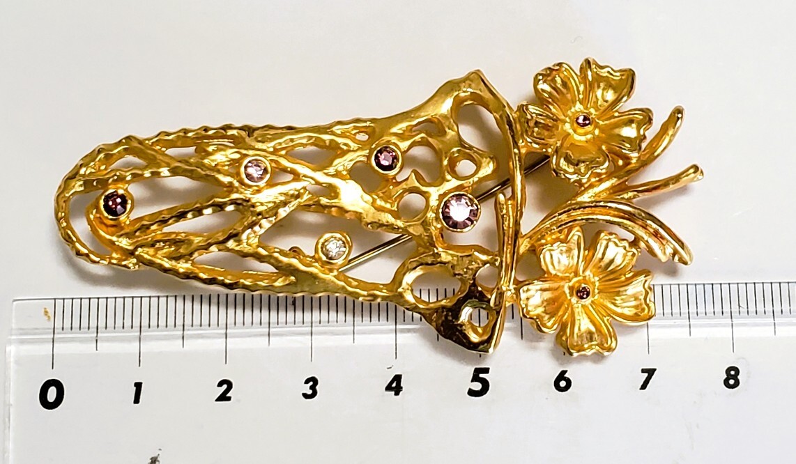 ラインストーン ブローチ ゴールドカラー レディース 20g 美品