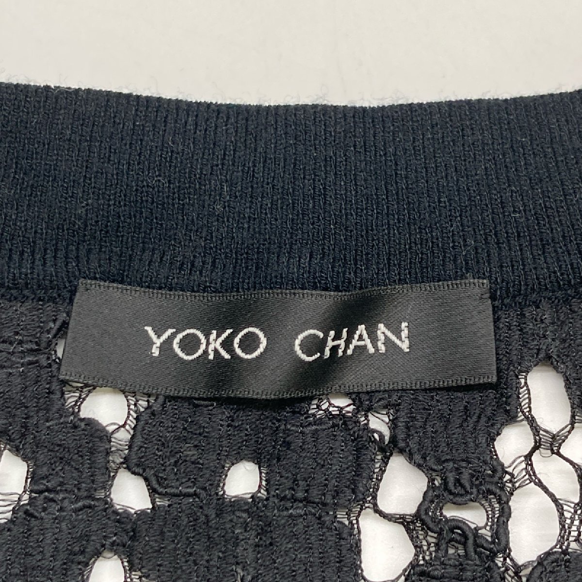 美品 YOKOCHAN ヨーコチャン YCN-416-041 レース/ニット切替 クルーネック ニット カーディガン 36 ブラック レディース