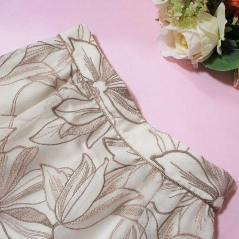 【アプワイザーリッシェ】エアリー 刺繍 ロング丈 スカート フレア お食事会 Apuweiser-riche  ベージュ系 総柄 1 花柄 匿名発送