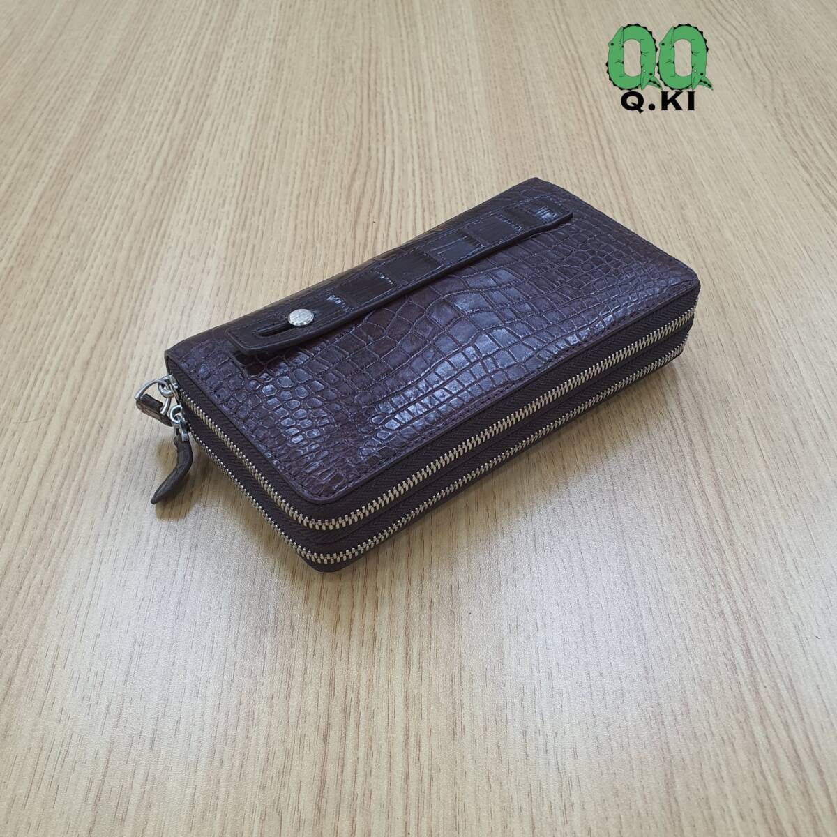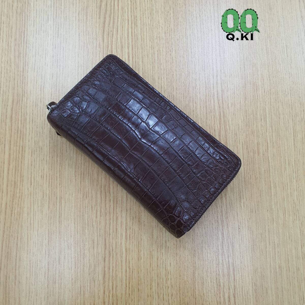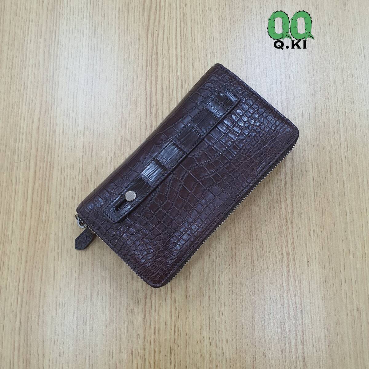 クロコダイルレザー 財布 ワニ革本物 本革 メンズ/レディース セカンドバッグ 名刺小銭入れ 一枚革 ラウンドファスナー 長財布 ブラウン