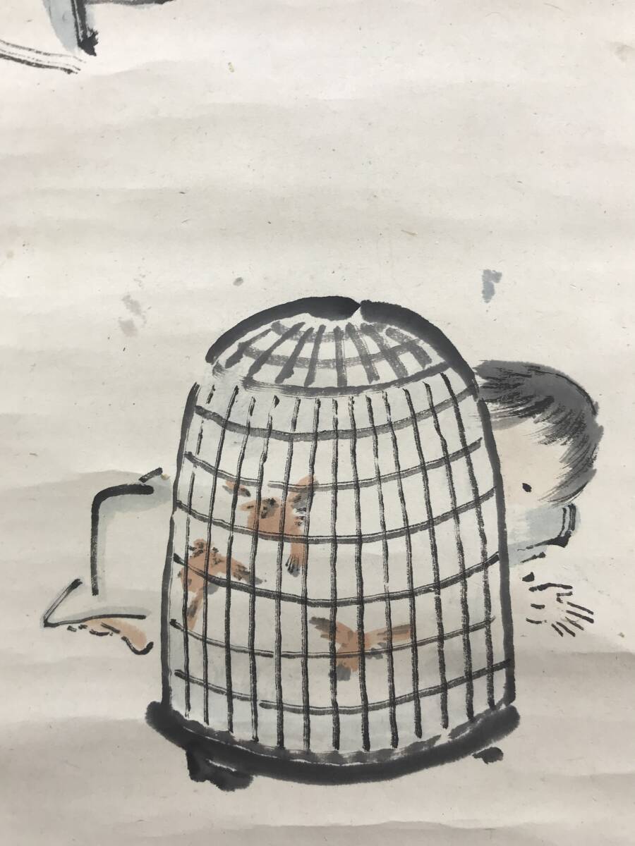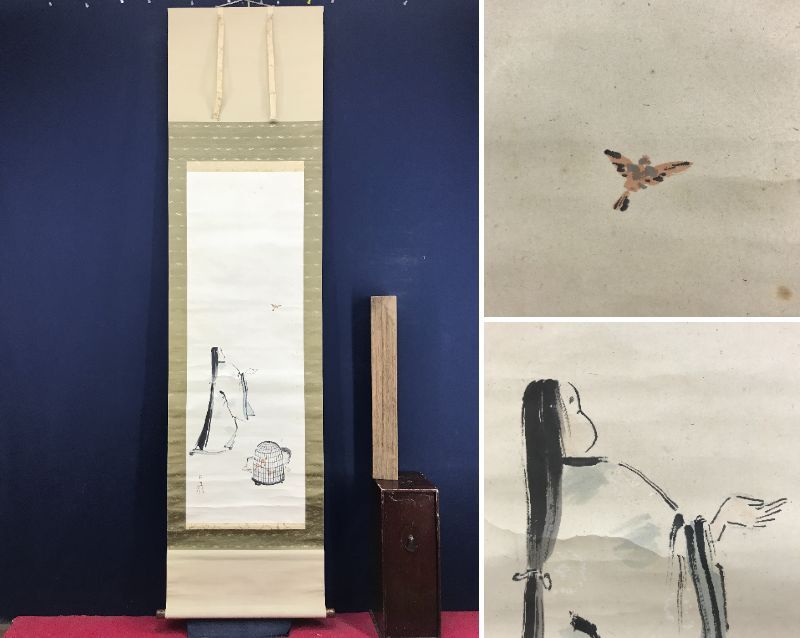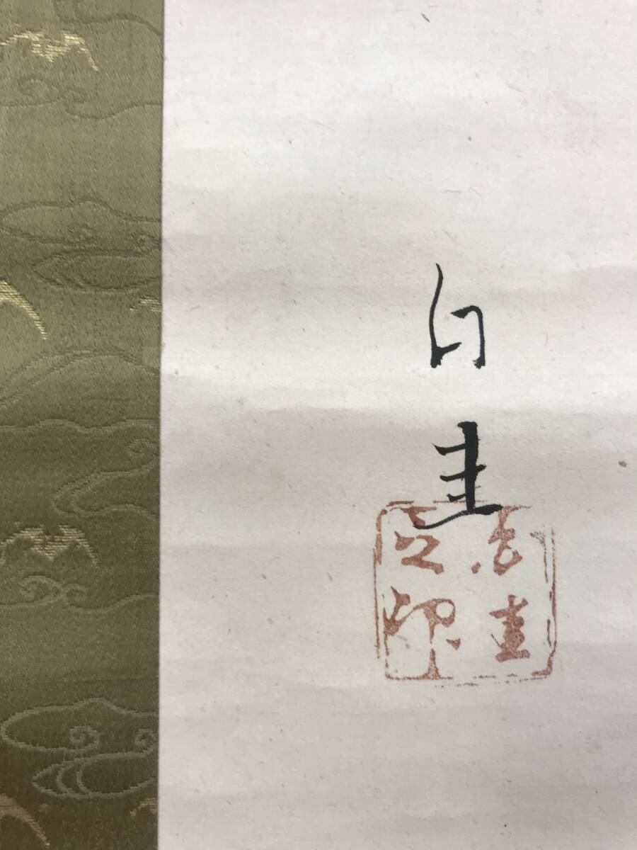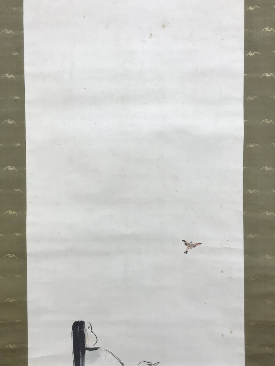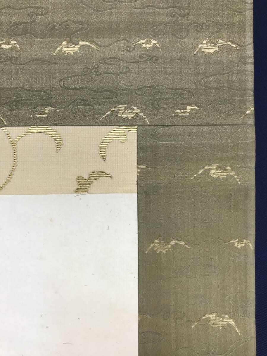 【作品状態】 本紙は紙本肉筆です。本紙は薄汚れ、多少の汚れシミ、多数の折れ、巻シワあります。表装は絹表装で、概ね良好です。