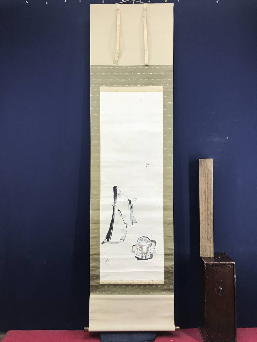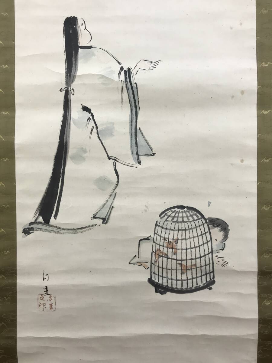 真作/日比野白圭/源氏物語/若紫/紫式部/掛軸☆宝船☆AI-976