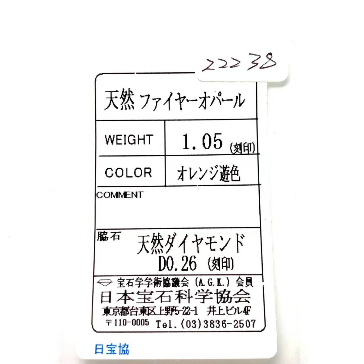 素材 | ■PT900 ■宝石:オパール1.05ct・ダイヤモンド0.26ct |