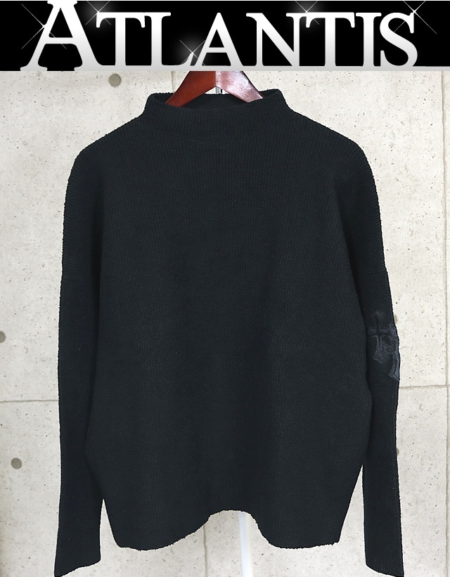 商品名 | CHROME HEARTS 銀座店 クロムハーツ 新品 ハラコ クロスパッチ ハイネック ニット セーター メンズ SV925 size:M‐L 黒 |
