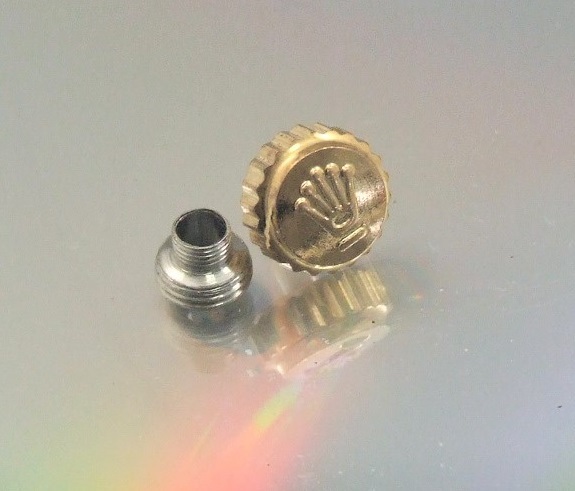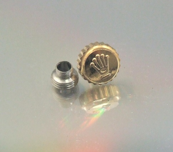 ◆ 修理交換用パーツ ■ 6mm リューズ・チューブのセット ★ スプリング式 ◆ パッキン内蔵 ◆ 金色・王冠マーク刻印 ◆ 対応品 ◆