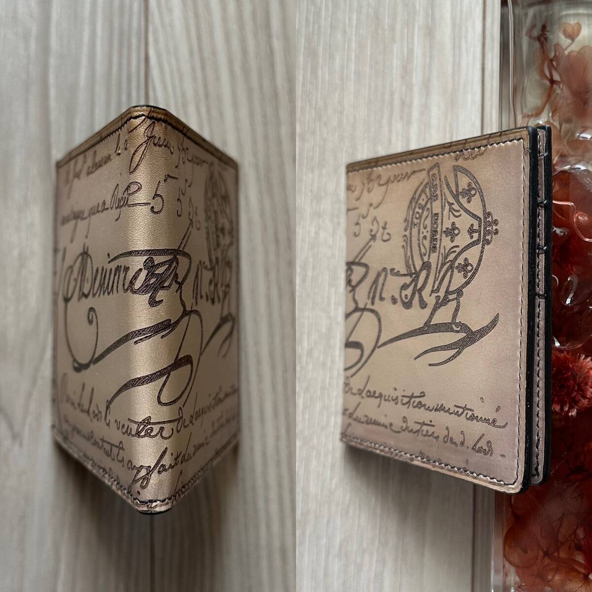 ・スペシャルオーダーでしか使用されない上質なヴェネチアレザー(艶が段違いで、カリグラフィースクリットも既製品と比べて深く彫られております)