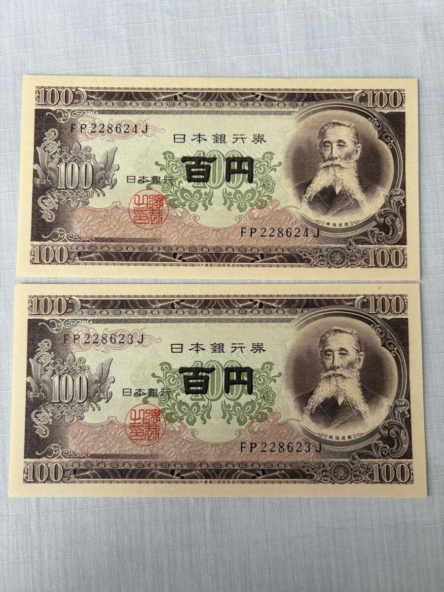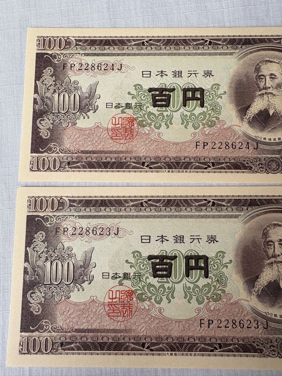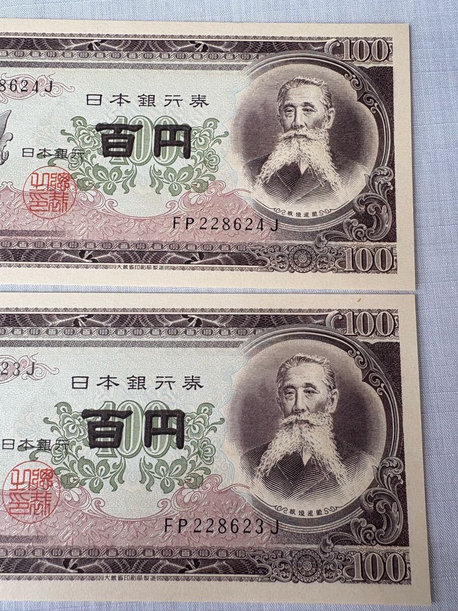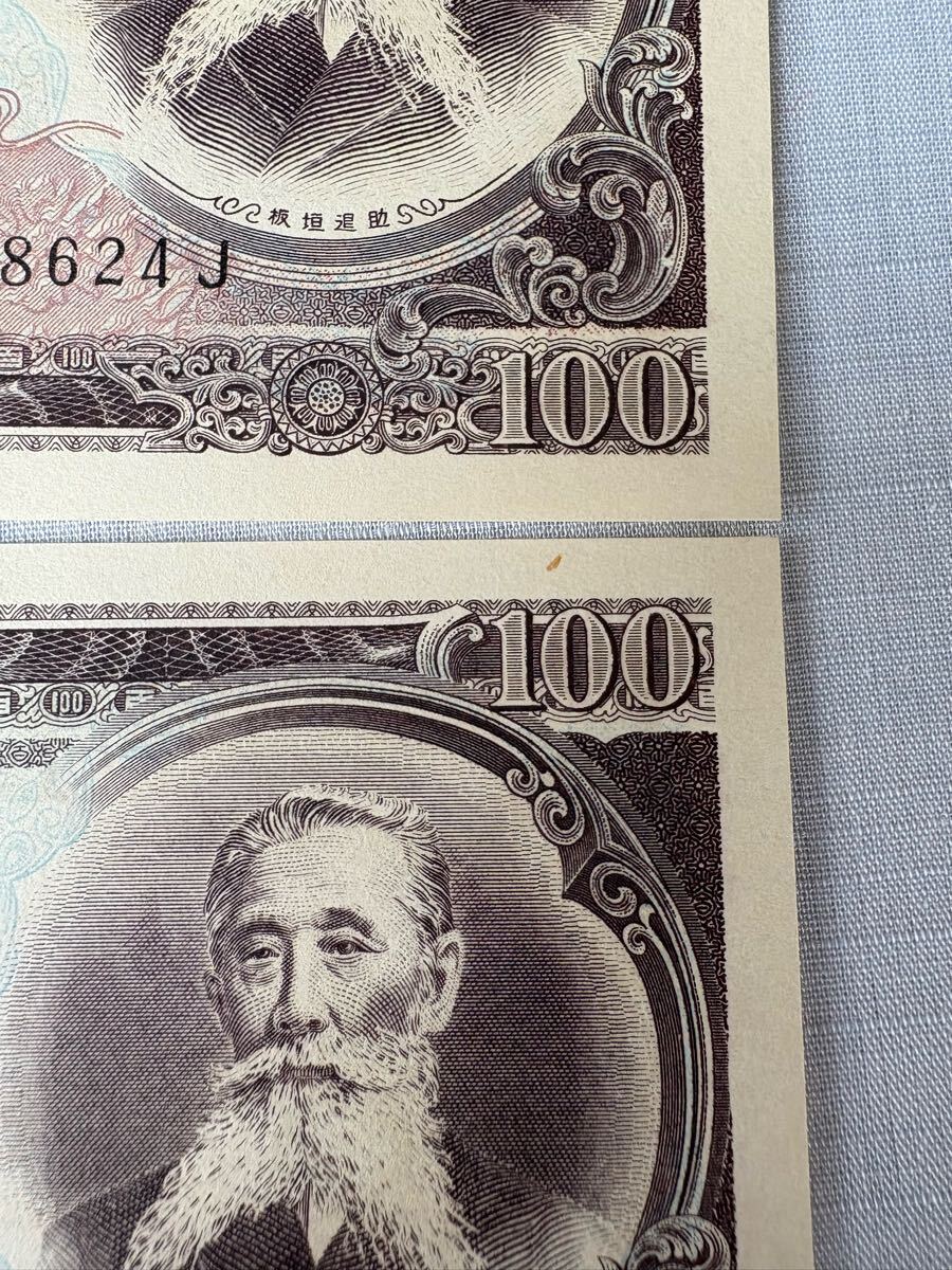 全体的に状態は綺麗ですが、画像4に写っていますように、下の紙幣は、上部に点のような汚れがあります。