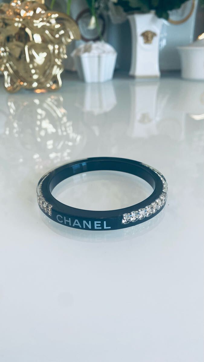 CHANELシャネルバングルブレスレットプラスチック黒ラインストーン