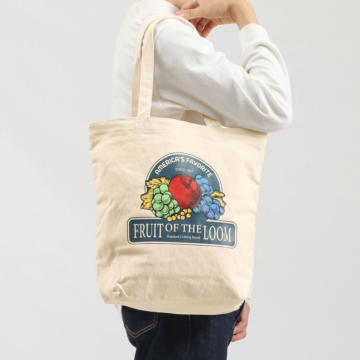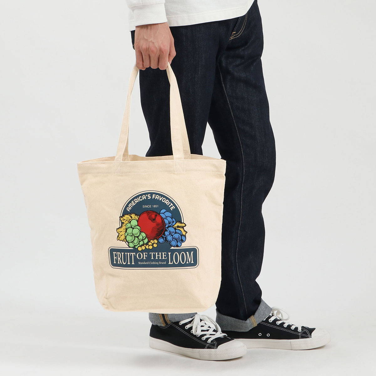 FRUIT OF THE LOOM フルーツオブザルーム プリント トートバッグ (ネイビー) 綿100% レトロ アメリカン フルーツ  FFGS SOUVENIR
