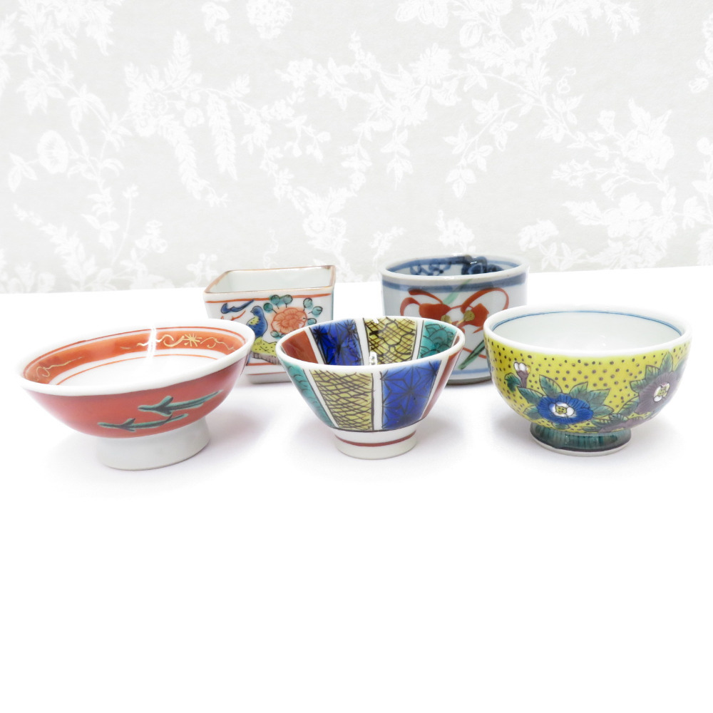 九谷焼 骨董・民芸品 食器 酒器 酒盃 おちょこ ぐい呑 5客組 九谷祥月 九谷泰幸 角福 まとめ売り