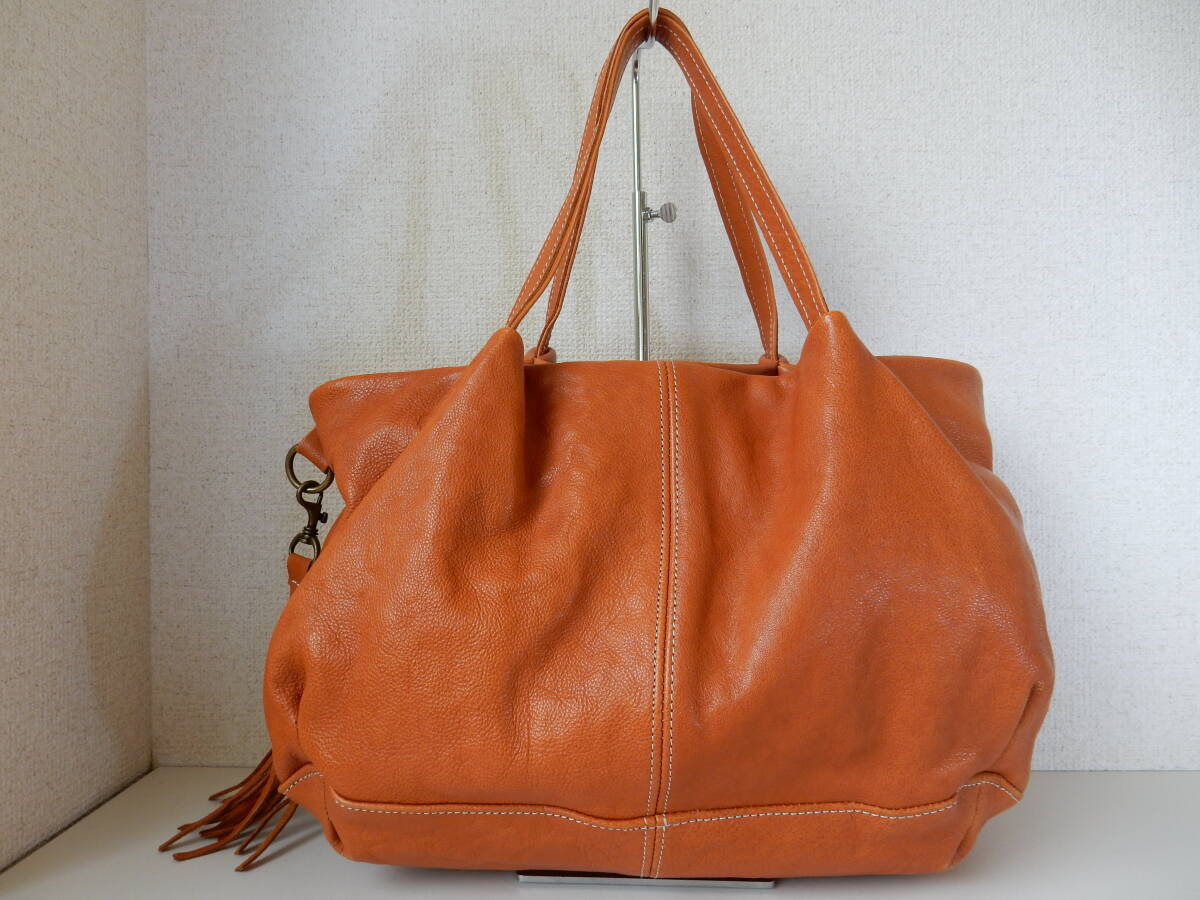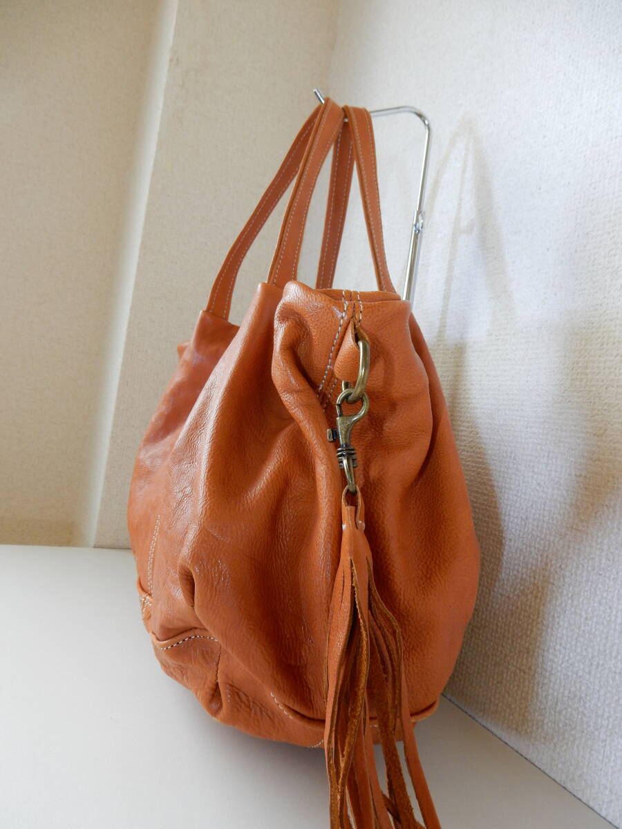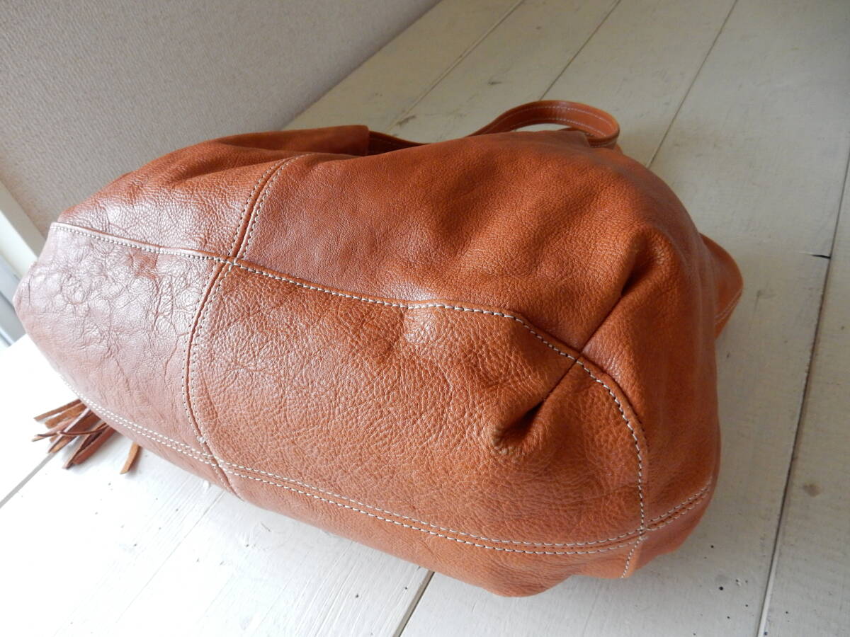 丸みを帯びたフォルムにサイドフリンジがアクセントとなった牛革トートバッグ。