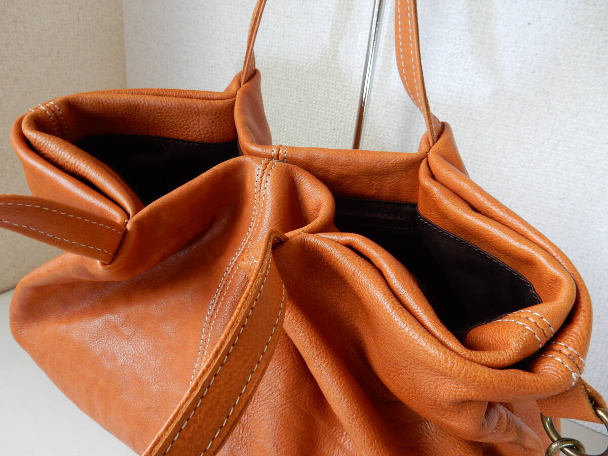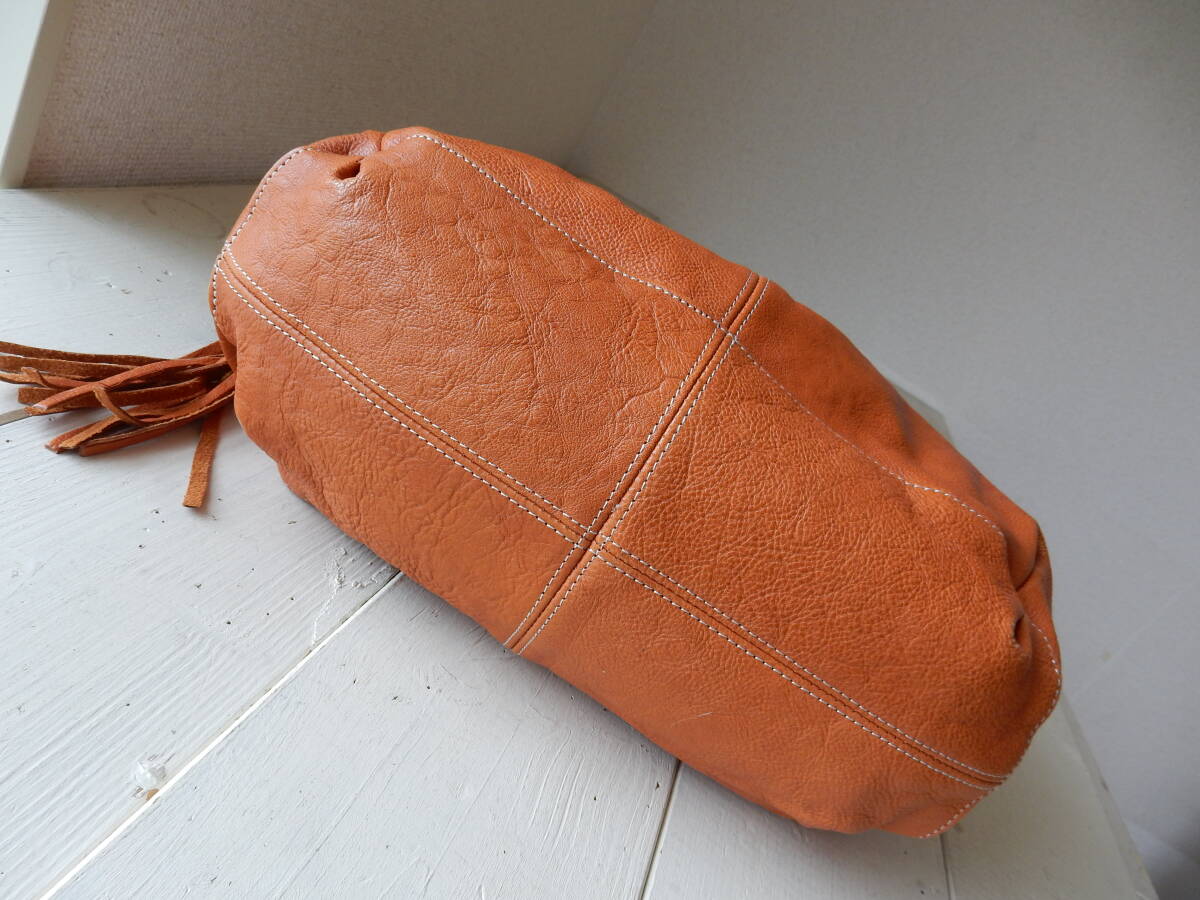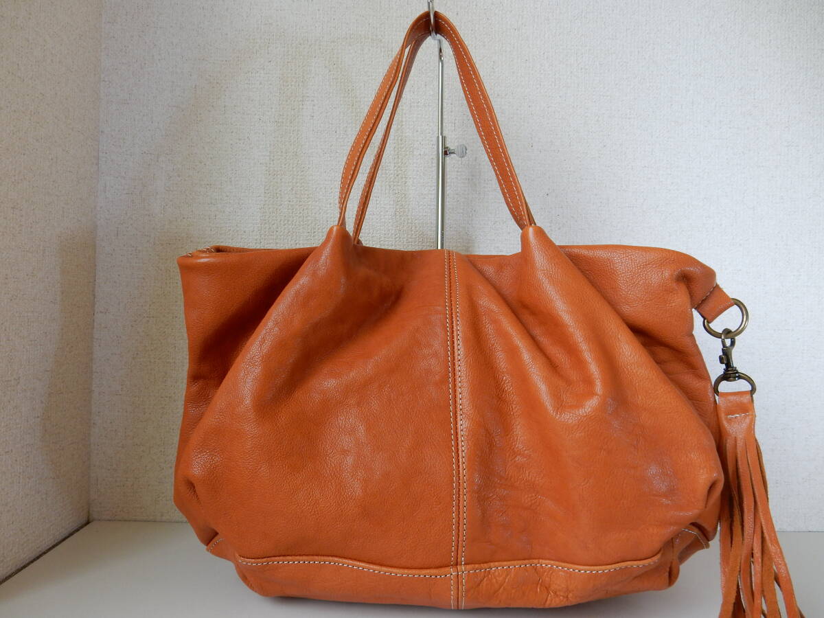丸みを帯びたフォルムにサイドフリンジがアクセントとなった牛革トートバッグ。