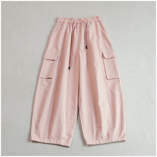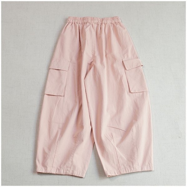 m 0704 パンツ ズボン 大きなポケット 綿100% 通気性手触り抜群 ゆったり オシャレ フリーサイズ ナチュラル オフピンク