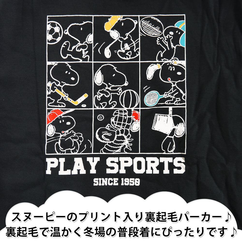 正規店仕入れの新品未使用品です 綿とポリエステル素材で、吸汗速乾に優れます 背中にスヌーピーのプリント入り裏起毛パーカー 裏起毛で温かく冬場の普段着にぴったりです |