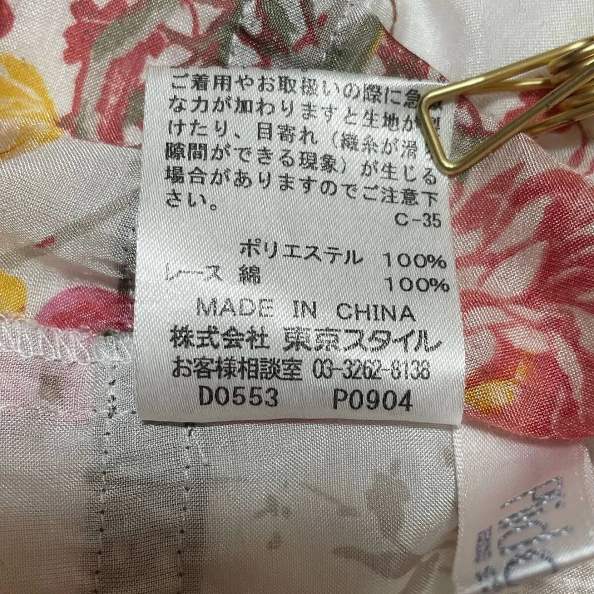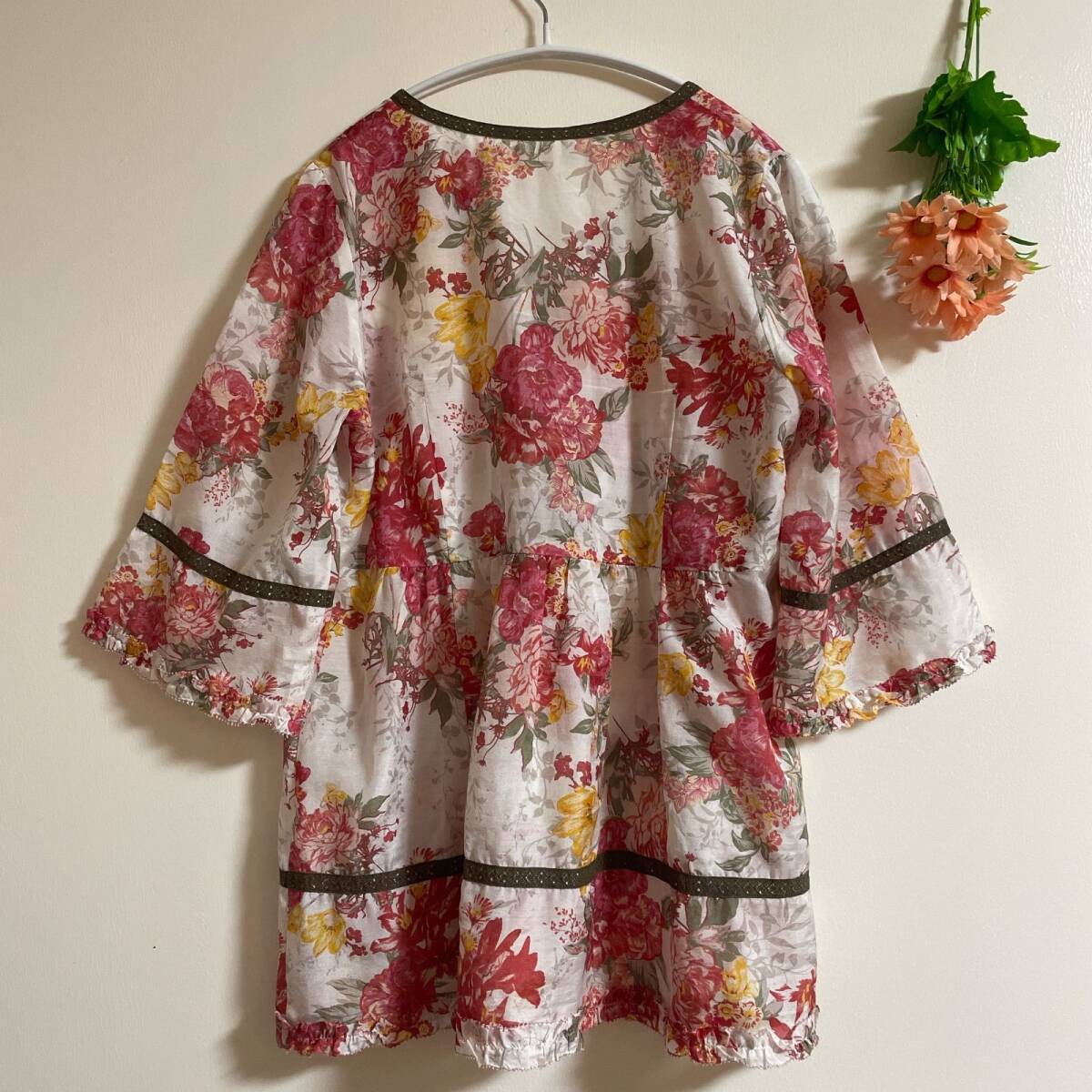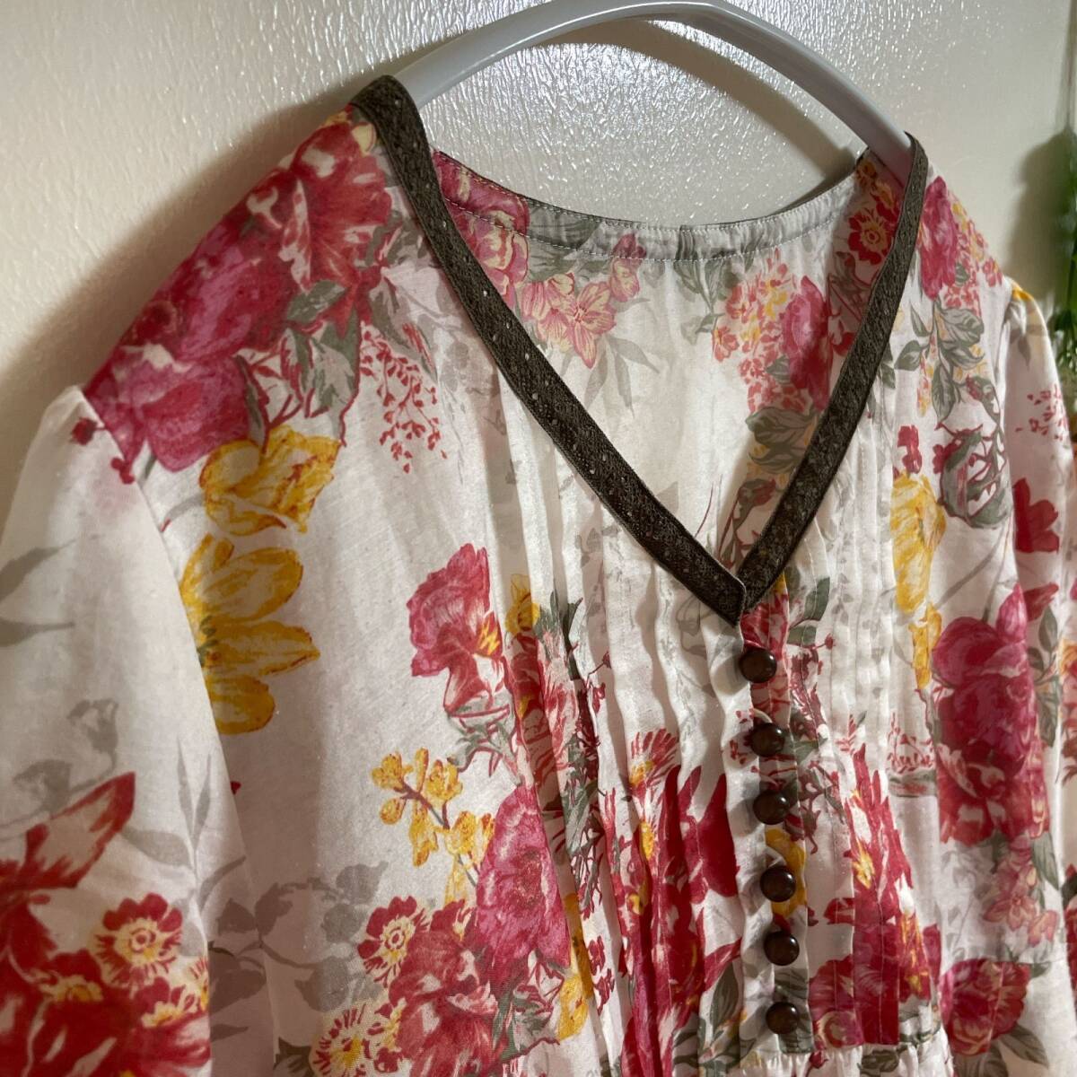 【PLIDOUL】 5分袖カットソー (S) チュニック 花柄 赤 白 美品 ふんわり 体系カバー